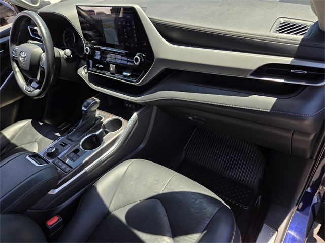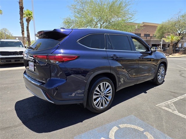 20/27 City/Highway MPGBlue 2021 Toyota Highlander Platinum AWD 8-Speed Automatic 3.5L V6 DOHC AWD.If you don't drive here, you can't save here!Awards: * ALG Residual Value Awards, Residual Value AwardsPrice may not include recon fee. AWD, 11 Speakers, 20" Painted Alloy Wheels, 3.003 Axle Ratio, 3rd row seats: split-bench, 4-Wheel Disc Brakes, ABS brakes, Air Conditioning, Alloy wheels, AM/FM radio: SiriusXM, Apple CarPlay/Android Auto, Auto High-beam Headlights, Auto-dimming Rear-View mirror, Automatic temperature control, Brake assist, Bumpers: body-color, Delay-off headlights, Digital Rearview Mirror w/HomeLink, Driver door bin, Driver vanity mirror, Dual front impact airbags, Dual front side impact airbags, Electronic Stability Control, Emergency communication system: Safety Connect with 1-year trial, Four wheel independent suspension, Front anti-roll bar, Front Bucket Seats, Front Center Armrest, Front dual zone A/C, Front fog lights, Front reading lights, Fully automatic headlights, Garage door transmitter: HomeLink, Heads-Up Display, Heated door mirrors, Heated front seats, Heated rear seats, Heated steering wheel, Heated/Ventilated Front Bucket Seats, High Grade LED Projector Headlights, Illuminated entry, Knee airbag, Leather Seat Trim, Leather Shift Knob, Low tire pressure warning, Memory seat, Navigation system: Dynamic Navigation (3-year trial), Occupant sensing airbag, Outside temperature display, Overhead airbag, Overhead console, Panic alarm, Panoramic Moonroof, Panoramic View Monitor, Passenger door bin, Passenger vanity mirror, Power door mirrors, Power driver seat, Power Liftgate, Power moonroof, Power passenger seat, Power steering, Power windows, Radio: Premium Audio w/JBL Clari-Fi, Rain sensing wipers, Rear air conditioning, Rear anti-roll bar, Rear reading lights, Rear window defroster, Rear window wiper, Reclining 3rd row seat, Remote keyless entry, Roof rack: rails only, Security system, Speed control, Speed-sensing steering, Split folding rear seat, Spoiler, Steering wheel mounted audio controls, Tachometer, Telescoping steering wheel, Tilt steering wheel, Traction control, Trip computer, Turn signal indicator mirrors, Variably intermittent wipers, and Ventilated front seats.