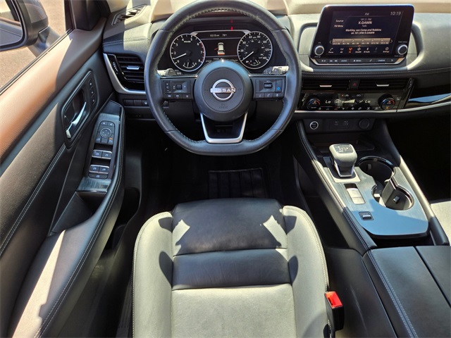 Priced below KBB Fair Purchase Price!29/36 City/Highway MPGGun Metallic 2022 Nissan Rogue SL FWD CVT with Xtronic 1.5L I3 Turbocharged DOHC 12V LEV3-ULEV50 201hpIf you don't drive here, you can't save here!Price may not include recon fee. 19" Aluminum Alloy Wheels, 4-Wheel Disc Brakes, 5.604 Axle Ratio, 6 Speakers, ABS brakes, Air Conditioning, Alloy wheels, AM/FM Radio, AM/FM radio: SiriusXM, Auto High-beam Headlights, Auto-dimming Rear-View mirror, Automatic temperature control, Black Splash Guards (Set of 4), Bose Premium Audio System, Brake assist, Bumpers: body-color, Chrome Rear Bumper Protector, Delay-off headlights, Driver door bin, Driver vanity mirror, Dual front impact airbags, Dual front side impact airbags, Electronic Stability Control, Emergency communication system: NissanConnect Services, First Aid Kit, Floor Mats w/2-Piece Cargo Area Protector, Four wheel independent suspension, Front anti-roll bar, Front Bucket Seats, Front Center Armrest, Front dual zone A/C, Front fog lights, Front reading lights, Fully automatic headlights, Heated door mirrors, Heated Front Bucket Seats, Heated front seats, Heated steering wheel, Illuminated entry, Knee airbag, Leather-Appointed Seat Trim, Low tire pressure warning, Memory seat, NissanConnect featuring Apple CarPlay and Android Auto, Occupant sensing airbag, Outside temperature display, Overhead airbag, Overhead console, Panic alarm, Passenger door bin, Passenger vanity mirror, Power door mirrors, Power driver seat, Power Liftgate, Power moonroof, Power passenger seat, Power steering, Power windows, Radio data system, Rear air conditioning, Rear anti-roll bar, Rear Parking Sensors, Rear reading lights, Rear seat center armrest, Rear side impact airbag, Rear window defroster, Rear window wiper, Remote keyless entry, Roof rack: rails only, Security system, Speed control, Speed-Sensitive Wipers, Split folding rear seat, Spoiler, Steering wheel mounted audio controls, Tachometer, Telescoping steering wheel, Tilt steering wheel, Traction control, Trip computer, Turn signal indicator mirrors, and Variably intermittent wipers.