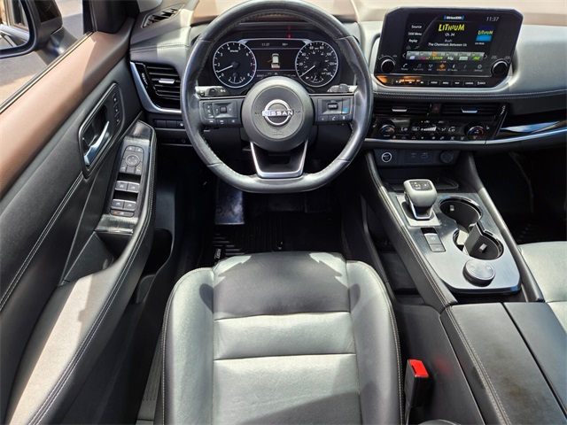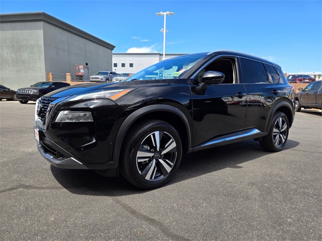 Priced below KBB Fair Purchase Price!28/34 City/Highway MPGSuper Black 2023 Nissan Rogue SL AWD CVT with Xtronic 1.5L I3 Turbocharged DOHC 12V LEV3-ULEV50 201hp AWD.If you don't drive here, you can't save here!Price may not include recon fee. SL Premium Package (Bose Premium Audio System and Radio: AM/FM NissanConnect w/Navigation), AWD, 19" Aluminum Alloy Wheels, 4-Wheel Disc Brakes, 5.604 Axle Ratio, 6 Speakers, ABS brakes, Air Conditioning, Alloy wheels, AM/FM Radio, AM/FM radio: SiriusXM, Auto High-beam Headlights, Auto-dimming Rear-View mirror, Automatic temperature control, Brake assist, Bumpers: body-color, Delay-off headlights, Driver door bin, Driver vanity mirror, Dual front impact airbags, Dual front side impact airbags, Electronic Stability Control, Emergency communication system: NissanConnect Services, Floor Mats w/2-Piece Cargo Area Protector, Four wheel independent suspension, Front anti-roll bar, Front Bucket Seats, Front Center Armrest, Front dual zone A/C, Front reading lights, Fully automatic headlights, Heated door mirrors, Heated Front Bucket Seats, Heated front seats, Heated steering wheel, Illuminated entry, Knee airbag, Leather steering wheel, Leather-Appointed Seat Trim, Low tire pressure warning, Memory seat, NissanConnect featuring Apple CarPlay and Android Auto, Occupant sensing airbag, Outside temperature display, Overhead airbag, Overhead console, Panic alarm, Passenger door bin, Passenger vanity mirror, Power door mirrors, Power driver seat, Power Liftgate, Power moonroof, Power passenger seat, Power steering, Power windows, Radio data system, Rear anti-roll bar, Rear Parking Sensors, Rear reading lights, Rear seat center armrest, Rear side impact airbag, Rear window defroster, Rear window wiper, Remote keyless entry, Security system, Speed control, Speed-Sensitive Wipers, Split folding rear seat, Spoiler, Steering wheel mounted audio controls, Tachometer, Telescoping steering wheel, Tilt steering wheel, Traction control, Trip computer, Turn signal indicator mirrors, and Variably intermittent wipers.