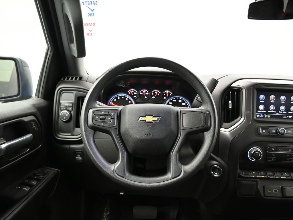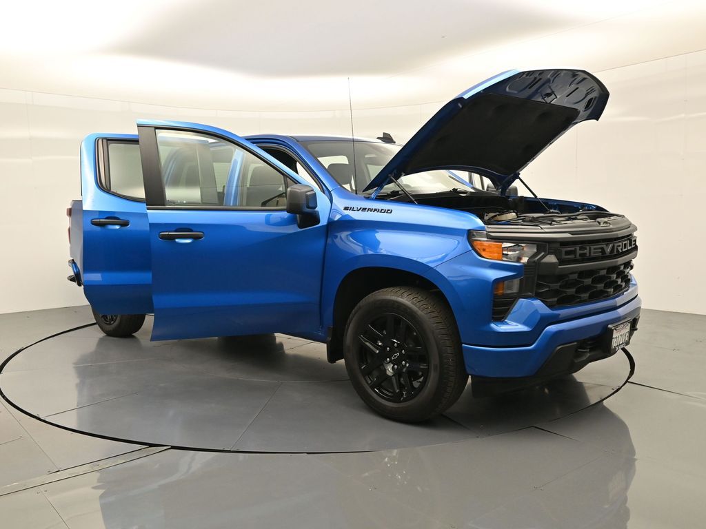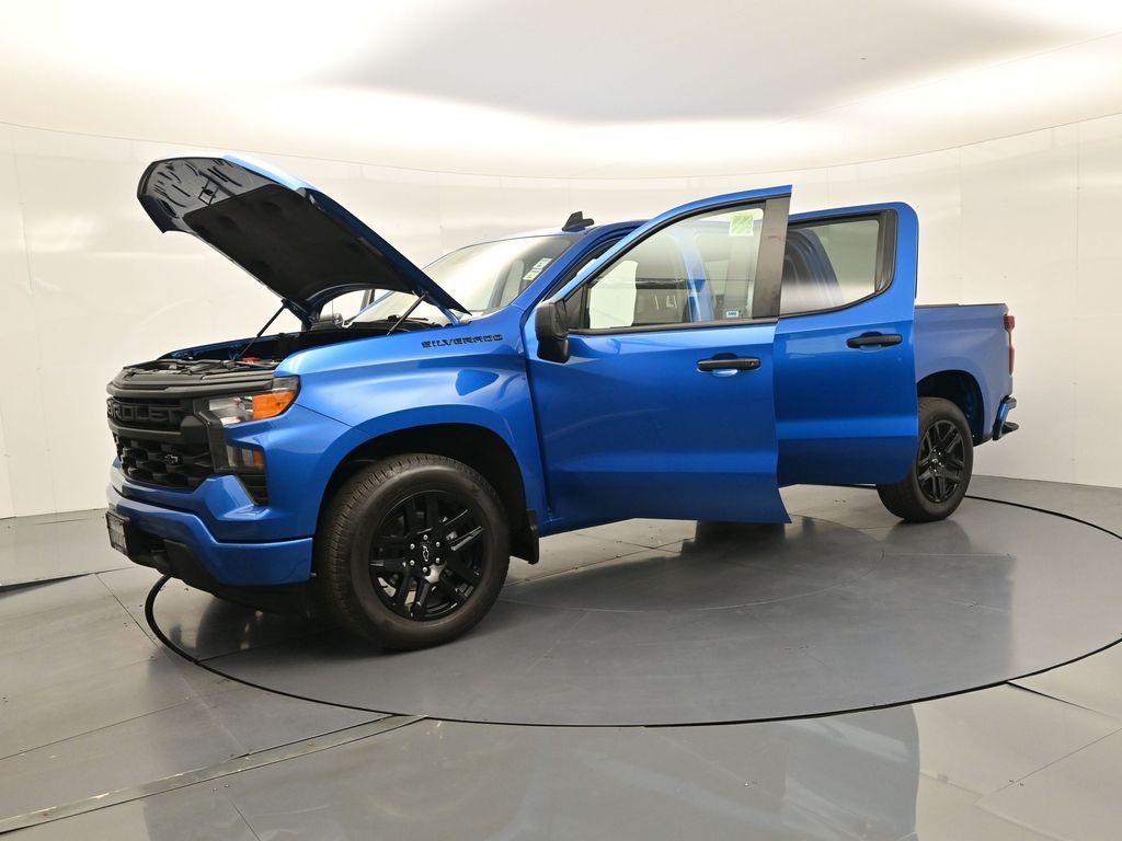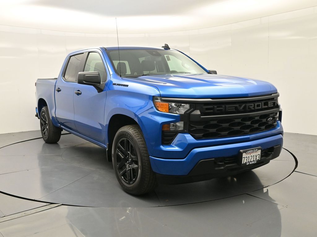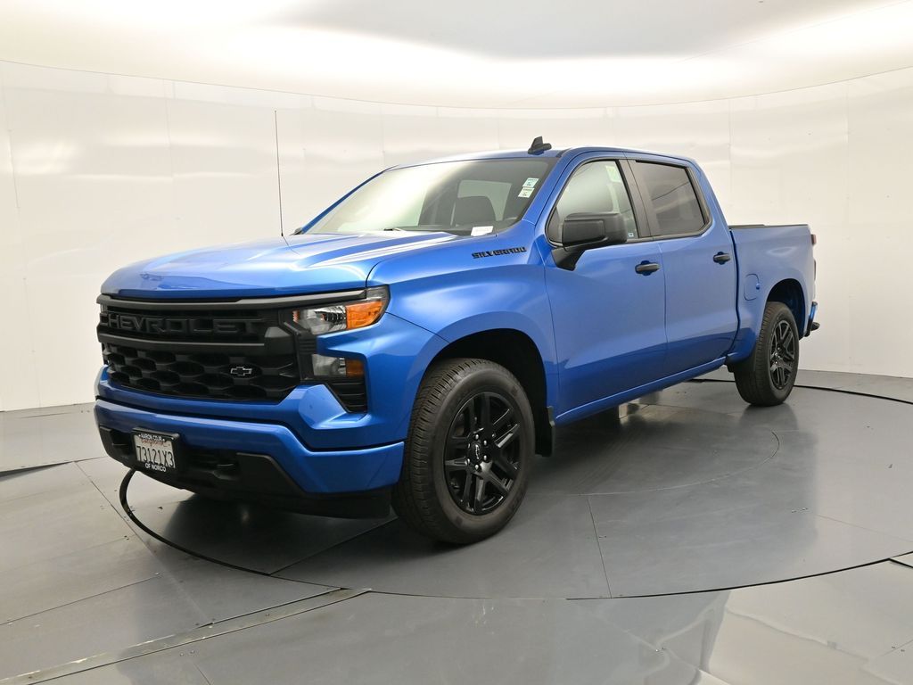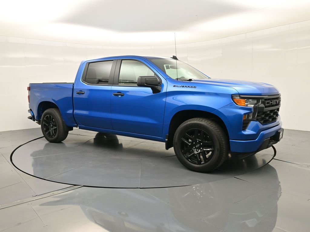 2024 Chevrolet Silverado 1500 Custom. Dark Essentials Pkg, RWD TurboMax, 1-Owner no accidents, just over 22k miles, 18/22 MPG.Crew Cab Short Bed, Trailering Pkg, wireless CarPlay/Android Auto. Para la version en espanol, vea abajo.Built for work and weekends, the Crew Cab seats up to six with a 40/20/40 front bench and 60/40 folding rear seat to open cargo space. EZ Lift power lock-and-release tailgate, 120-V outlets in the cab and bed, LED cargo lighting, and front recovery hooks streamline jobs. Chevy Safety Assist adds Automatic Emergency Braking, Front Pedestrian Braking, Lane Keep Assist, Following Distance Indicator, plus Rear Vision Camera for confident maneuvering.Renowned for durability, everyday comfort, and strong tech value in the full-size pickup segment.We keep it simple with a transparent process, thorough inspections and reconditioning, and straightforward financing options. Expect clear answers, market-based pricing, and a no-pressure environment focused on your satisfaction. Our experienced team and convenient locations make every step smooth.Ready to see this vehicle up close? Contact us today to schedule a no-obligation test drive or virtual tour, and lets discuss how we can tailor financing to fit your needs. Our team is dedicated to addressing any concerns and guiding you every step of the way.2024 Chevrolet Silverado 1500 Custom. Paquete Dark Essentials, TurboMax RWD, 1 dueno sin accidentes, poco mas de 22,000 millas, 18/22 MPG.Crew Cab Short Bed, paquete de remolque, CarPlay/Android Auto inalambricos.Hecha para el trabajo y el fin de semana, la cabina doble acomoda hasta seis con banca delantera 40/20/40 y banca trasera 60/40 que se abate para ampliar carga. El porton EZ Lift con seguro electrico, tomas de 120 V en cabina y caja, iluminacion LED de carga y ganchos frontales facilitan las tareas. Chevy Safety Assist suma frenado automatico, frenado para peatones, asistente de carril, indicador de distancia y camara de reversa.Reconocida por su durabilidad, comodidad diaria y excelente tecnologia en el segmento de pickups de tamano completo.Mantenemos un proceso transparente, con inspecciones y reacondicionamiento minuciosos y opciones de financiamiento claras. Recibe respuestas directas, precios basados en el mercado y un ambiente sin presion enfocado en tu satisfaccion. Nuestro equipo con experiencia y ubicaciones convenientes hacen fluida tu compra.Lista para verla de cerca? Contactanos hoy para agendar una prueba de manejo sin compromiso o un recorrido virtual, y conversemos como adaptar el financiamiento a tus necesidades. Nuestro equipo atendera tus dudas y te acompanara en cada paso.