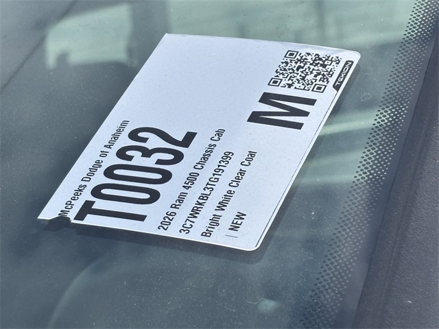 Bright White Clearcoat 2026 Ram 4500HD Tradesman RWD 8-Speed Automatic Cummins 6.7L I6 Turbodiesel INTERIOR & EXTERIOR PROFESSIONALLY DETAILED FOR DELIVERY, MCPEEK CHRYSLER DODGE JEEP RAM FAMILY OWNED AND OPERATED SINCE 1961 !!!!!.All prices are subject to change without notice. All vehicles subject to prior sale. Advertised price does not include Dealer Installed Accessories or Commercial Bed/Body Upfits. Please contact dealer to receive the most up to date pricing information and complete details. Price includes: $2500 - 2026 National Bonus Cash . Exp. 02/02/2026