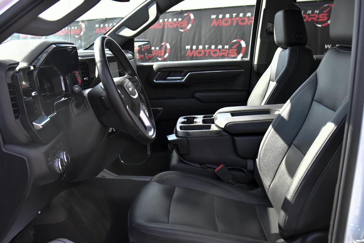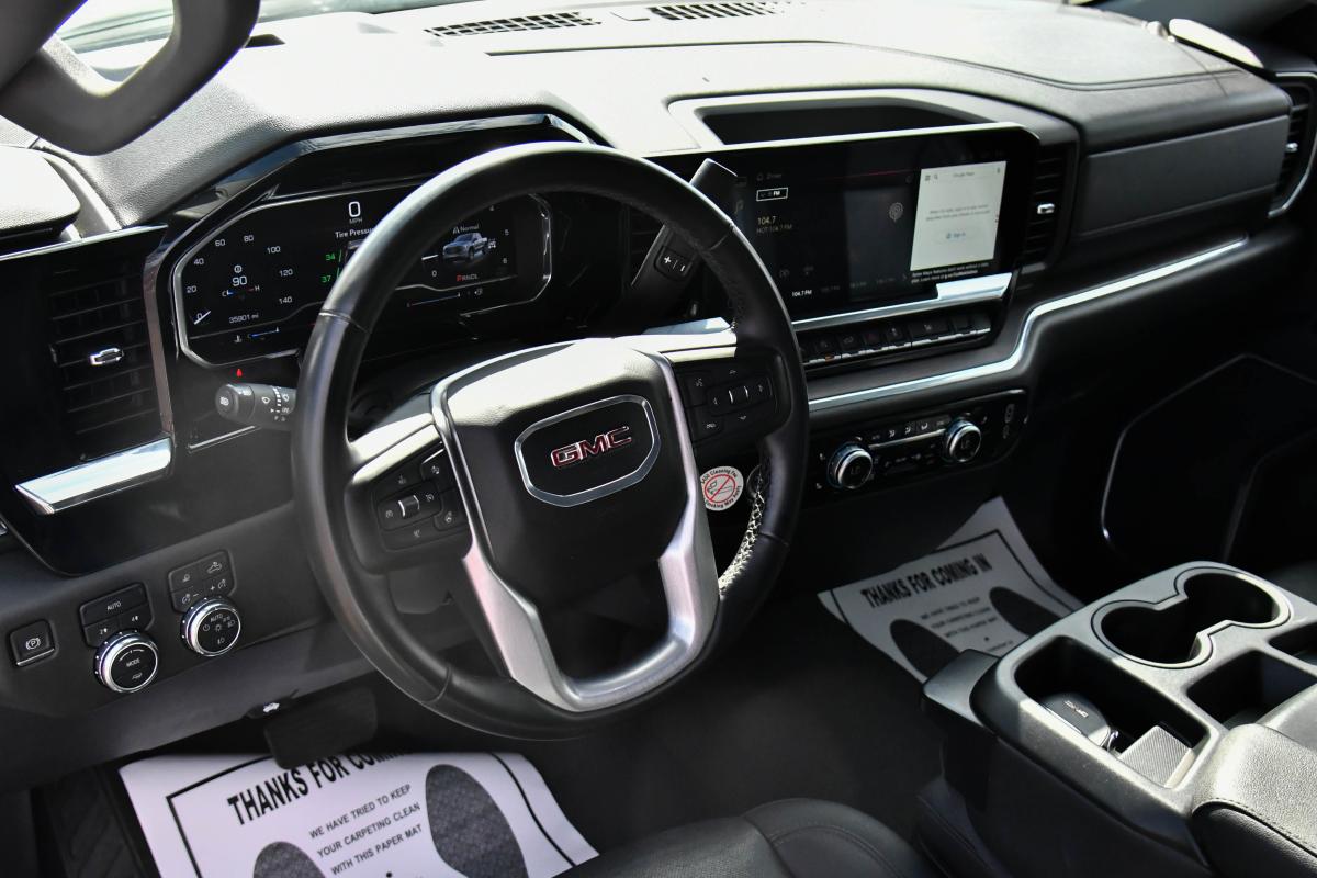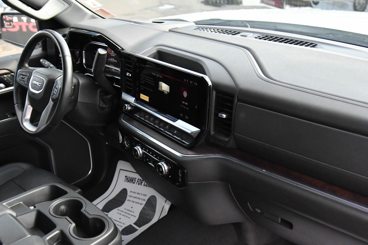 This GMC Sierra 1500 has a strong Gas V8 5.3L/325 engine powering this Automatic transmission. WHEELS, 18 X 8.5 (45.7 CM X 21.6 CM) 6-SPOKE MACHINED ALUMINUM with Dark Grey Metallic accents (STD), TRANSMISSION, 10-SPEED AUTOMATIC, (COLUMN SHIFTER) ELECTRONICALLY CONTROLLED with overdrive and tow/haul mode. Includes Cruise Grade Braking and Powertrain Grade Braking (STD), TIRES, 265/65R18SL ALL-SEASON, BLACKWALL (STD).*This GMC Sierra 1500 Comes Equipped with These Options *TIRE, SPARE 265/70R17SL ALL-SEASON, BLACKWALL (STD), SUMMIT WHITE, STEERING COLUMN LOCK, ELECTRICAL (Beginning with start of production through July 31, 2023, vehicles will be forced to include (R7N) Not Equipped with Steering Column Lock, which removes Steering Column Lock. See dealer for details. Vehicles built on or after July 31, 2023 will include (N06) Steering Column Lock.), SLT PREFERRED EQUIPMENT GROUP Includes Standard Equipment, SEATS, FRONT 40/20/40 SPLIT-BENCH with covered armrest storage and under-seat storage (lockable) (STD), REAR AXLE, 3.23 RATIO, LPO, ALL-WEATHER FLOOR LINER, 1ST AND 2ND ROWS (dealer-installed), JET BLACK, PERFORATED LEATHER-APPOINTED FRONT OUTBOARD SEAT TRIM, GVWR, 7100 LBS. (3221 KG) (STD), ENGINE, 5.3L ECOTEC3 V8 (355 hp [265 kW] @ 5600 rpm, 383 lb-ft of torque [518 Nm] @ 4100 rpm); featuring Dynamic Fuel Management (STD).