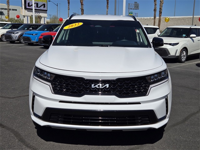 Recent Arrival!24/29 City/Highway MPGGlacial White Pearl 2022 Kia Sorento S FWD 8-Speed Automatic 2.5L I4 DGI DOHC 16V LEV3-ULEV70 191hpIf you don't drive here, you can't save here!Price may not include recon fee. 3.798 Axle Ratio, 3rd row seats: split-bench, 4-Wheel Disc Brakes, 6 Speakers, ABS brakes, Air Conditioning, Alloy wheels, AM/FM radio: SiriusXM, Apple CarPlay & Android Auto, Auto High-beam Headlights, Automatic temperature control, Brake assist, Bumpers: body-color, Carpeted Floor Mats, Delay-off headlights, Driver door bin, Driver vanity mirror, Dual front impact airbags, Dual front side impact airbags, Electronic Stability Control, Emergency communication system: UVO Link, Exterior Parking Camera Rear, Four wheel independent suspension, Front anti-roll bar, Front Bucket Seats, Front Center Armrest, Front dual zone A/C, Front reading lights, Fully automatic headlights, Heated door mirrors, Heated Front Bucket Seats, Heated front seats, Illuminated entry, Knee airbag, Leather Shift Knob, Leather steering wheel, Low tire pressure warning, Navigation System, Occupant sensing airbag, Outside temperature display, Overhead airbag, Overhead console, Panic alarm, Passenger door bin, Passenger vanity mirror, Power door mirrors, Power driver seat, Power steering, Power windows, Radio data system, Radio: AM/FM Audio System, Rear air conditioning, Rear anti-roll bar, Rear reading lights, Rear seat center armrest, Rear window defroster, Rear window wiper, Remote keyless entry, Roof rack: rails only, Security system, Smart Key w/ Push Button and Remote Start, Speed control, Speed-sensing steering, Split folding rear seat, Spoiler, Steering wheel mounted audio controls, SynTex Artificial Leather Seat Trim, Tachometer, Telescoping steering wheel, Tilt steering wheel, Traction control, Trip computer, Turn signal indicator mirrors, Variably intermittent wipers, and Wheels: 7.5J x 18" Machine-Finished Alloy.