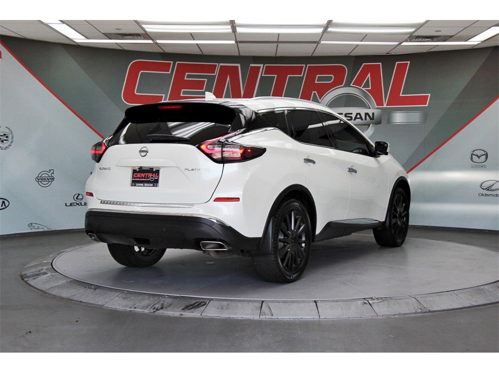 Central Houston Nissan is proud to present you with another True Market Priced Pre-Owned Vehicle. This 2022 Nissan Murano Platinum Nissan Certified is loaded with the following Factory Options: Nissan Certified Certified and CVT with Xtronic Nissan Certified Certified, CVT with Xtronic, 11 Speakers, 4-Wheel Disc Brakes, 4.667 Axle Ratio, ABS brakes, Air Conditioning, Alloy wheels, AM/FM radio: SiriusXM, AM/FM/CD/MP3/WMA Audio System, Auto High-beam Headlights, Auto tilt-away steering wheel, Auto-dimming Rear-View mirror, Automatic temperature control, Blind Spot Warning, Brake assist, Bumpers: body-color, CD player, Child-Seat-Sensing Airbag, Delay-off headlights, Driver door bin, Driver vanity mirror, Dual front impact airbags, Dual front side impact airbags, Electronic Stability Control, Emergency communication system: NissanConnect Services (first 6 months included), Exterior Accent Lighting, Exterior Parking Camera Rear, Four wheel independent suspension, Front anti-roll bar, Front Bucket Seats, Front Center Armrest, Front dual zone A/C, Front fog lights, Front reading lights, Fully automatic headlights, Garage door transmitter: HomeLink, Heated & Ventilated Front Bucket Seats, Heated door mirrors, Heated front seats, Heated rear seats, Heated steering wheel, Illuminated entry, Illuminated Kick Plates, Illuminated Kick Plates (PIO), Interior Accent Lighting, Knee airbag, Low tire pressure warning, Memory seat, Navigation system: NissanConnect Navigation, NissanConnect featuring Apple CarPlay and Android Auto, NissanConnect Services Powered By SiriusXM, Occupant sensing airbag, Outside temperature display, Overhead airbag, Overhead console, Panic alarm, Passenger door bin, Passenger vanity mirror, Power door mirrors, Power driver seat, Power Liftgate, Power moonroof, Power passenger seat, Power steering, Power windows, Premium audio system: Bose, Radio data system, Rear anti-roll bar, Rear Bumper Protector, Rear reading lights, Rear seat center armrest, Rear side impact airbag, Rear window defroster, Rear window wiper, Remote keyless entry, Roof rack: rails only, Security system, Semi-Aniline Leather-Appointed Seat Trim, Speed control, Speed-sensing steering, Speed-Sensitive Wipers, Splash Guards (B92), Split folding rear seat, Spoiler, Steering wheel memory, Steering wheel mounted audio controls, Tachometer, Telescoping steering wheel, Tilt steering wheel, Traction control, Trip computer, Turn signal indicator mirrors, Variably intermittent wipers, Ventilated front seats, Wheels: 20" Satin Black Alloy, and Wheels: 20" Unique Dark Hyper Silver!!Central Houston Nissan is more than just your typical car dealership. When our customers visit us, our goal is to provide quality vehicles, exceptional service and a friendly atmosphere. Our staff has been trained to create ease during your purchase or service experience and we are always making sure you get everything you want and deserve out of your visit. Our vision and mission is an employee-centered and customer-focused environment. Vehicles may be subject to prep package and market adjustment. When you buy from Central Houston Nissan, we'll make it the best car buying experience you've ever had. When you purchase a New Nissan or a qualifying Pre-Owned vehicle from Central Houston Nissan, you are automatically enrolled into our Central Houston Nissan Central Care Program at no cost to you. You can’t beat that! Vehicles may be subject to prep package and market adjustment. Stop by 2901 S Loop W, Houston, Texas 77054 today!!!
