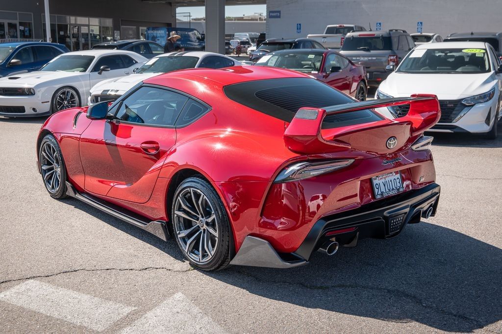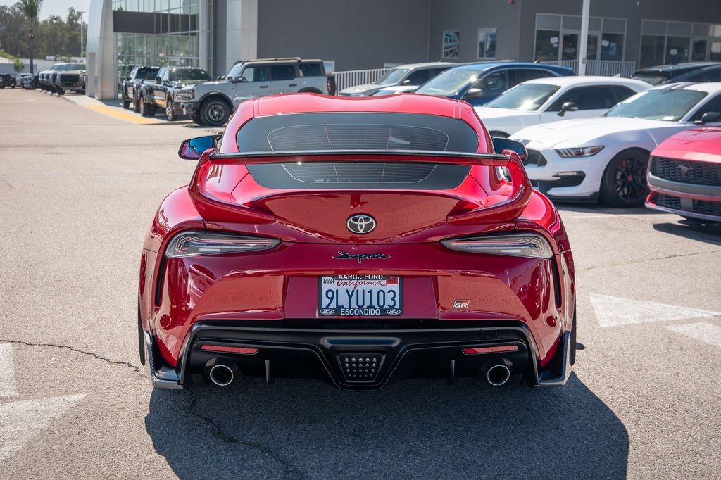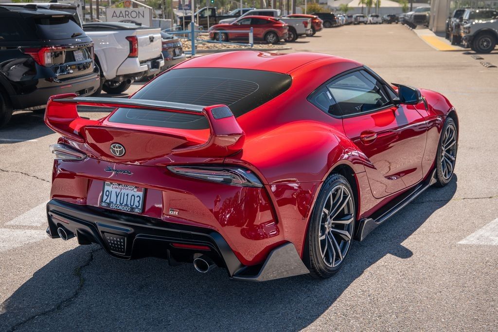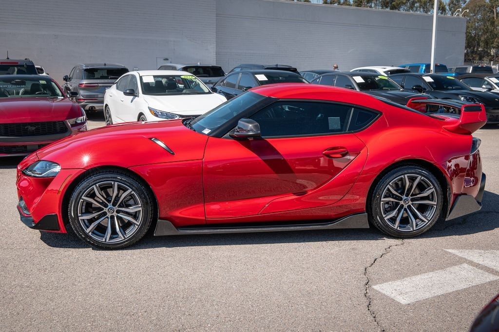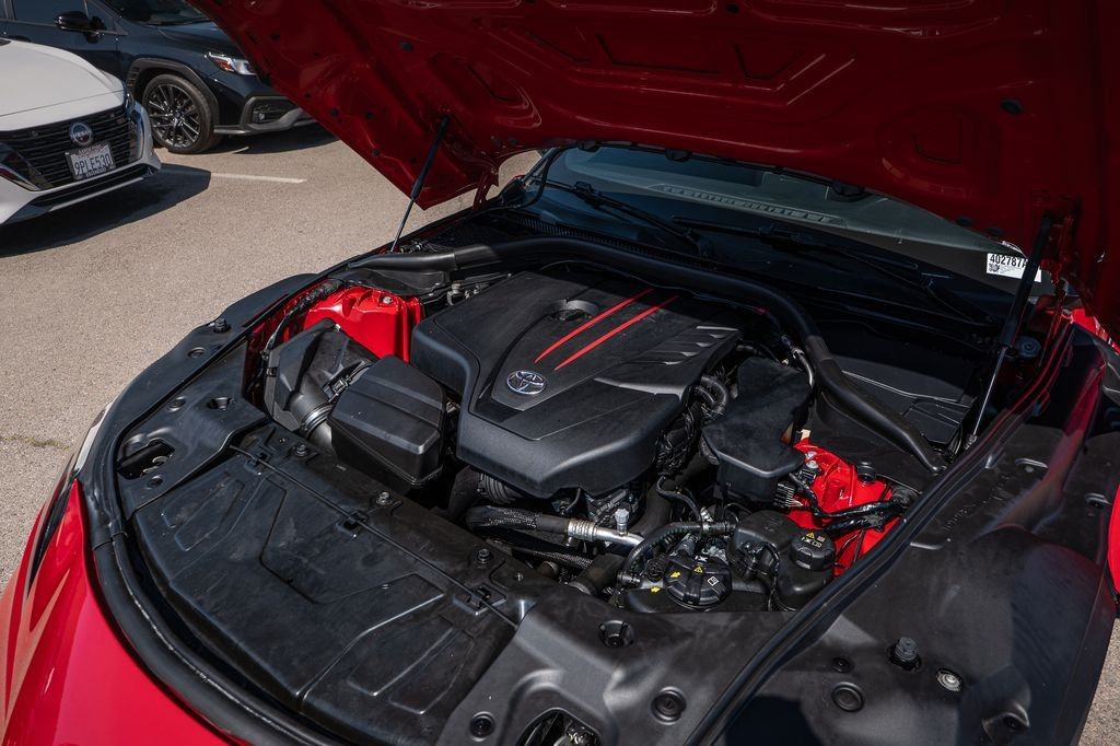 Red 2023 Toyota GR Supra 2.0 RWD 8-Speed Automatic 2.0L I4 DOHC 16V Alcantara Seat Trim, Alloy wheels, Exterior Parking Camera Rear, Garage door transmitter: HomeLink, Leather steering wheel, Panic alarm, Power driver seat, Power steering, Rain sensing wipers, Security system, Wheels: 18" Cast Aluminum.25/31 City/Highway MPG