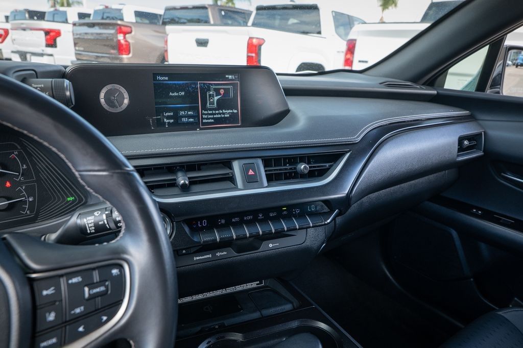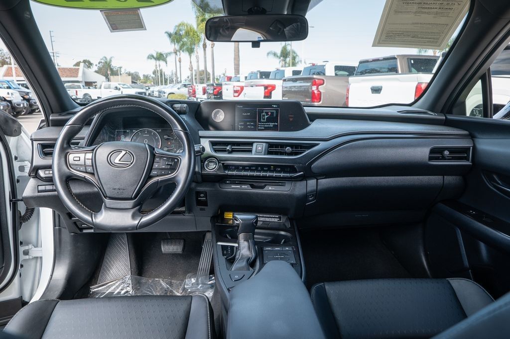 White 2022 Lexus UX 200 Base FWD CVT 2.0L 16V DOHC 6 Speakers, Alloy wheels, AM/FM radio: SiriusXM, Apple CarPlay/Android Auto, CD player, Front dual zone A/C, Outside temperature display, Radio data system, Radio: Lexus Multimedia System w/Color Display, Roof rack: rails only, Spoiler, Wheels: 18" x 7J 5-Spk Dark Gray Met Alum Alloy.29/37 City/Highway MPG