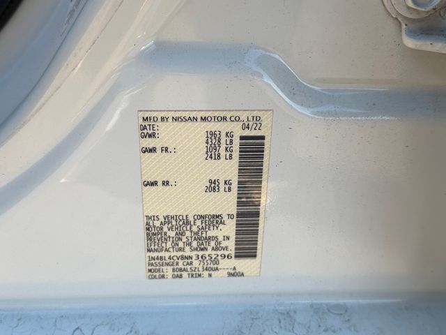 27/37 City/Highway MPGPearl White Tricoat 2022 Nissan Altima 2.5 SR FWD CVT with Xtronic 2.5L 4-Cylinder DOHC 16V CVT with Xtronic.If you don't drive here, you can't save here!Price may not include recon fee. CVT with Xtronic, 4-Wheel Disc Brakes, 6 Speakers, ABS brakes, Air Conditioning, Alloy wheels, AM/FM radio: SiriusXM, Auto High-beam Headlights, Blind Spot Warning, Body-Colored Splash Guards, Brake assist, Bumpers: body-color, Chrome Bumper Protector, Delay-off headlights, Driver door bin, Driver vanity mirror, Dual front impact airbags, Dual front side impact airbags, Electronic Stability Control, Four wheel independent suspension, Front anti-roll bar, Front Bucket Seats, Front Center Armrest, Front reading lights, Front Sport Bucket Seats, Fully automatic headlights, Illuminated entry, Knee airbag, Leather Shift Knob, Low tire pressure warning, NissanConnect featuring Apple CarPlay and Android Auto, Occupant sensing airbag, Outside temperature display, Overhead airbag, Overhead console, Panic alarm, Passenger door bin, Passenger vanity mirror, Power door mirrors, Power driver seat, Power steering, Power windows, Radio data system, Radio: AM/FM Audio System, Rear anti-roll bar, Rear Parking Sensors, Rear reading lights, Rear seat center armrest, Rear side impact airbag, Rear window defroster, Remote keyless entry, Security system, Speed control, Speed-sensing steering, Speed-Sensitive Wipers, Split folding rear seat, Sport Seat Trim, Sport steering wheel, SR Floor Mats/Trunk Mat/Hideaway Nets, Steering wheel mounted audio controls, Tachometer, Telescoping steering wheel, Tilt steering wheel, Traction control, Trip computer, Trunk Organizer Tray, Variably intermittent wipers, and Wheels: 19" Machined Alloy.