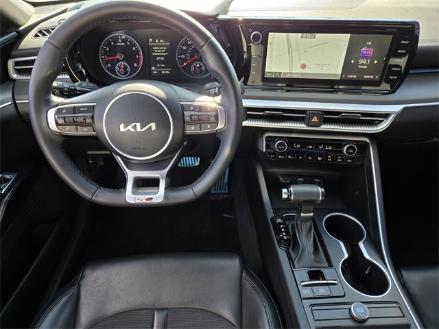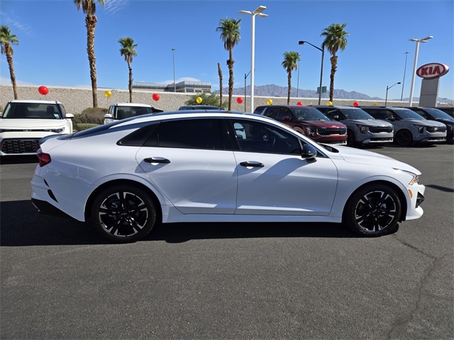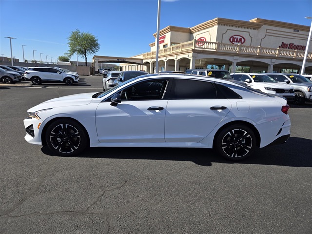 Recent Arrival!CARFAX One-Owner.Priced below KBB Fair Purchase Price!Odometer is 7281 miles below market average!Glacial White Pearl 2022 Kia K5 GT-Line FWD 8-Speed Automatic I4If you don't drive here, you can't save here!Price may not include recon fee. 4-Wheel Disc Brakes, 6 Speakers, ABS brakes, Air Conditioning, Alloy wheels, AM/FM radio: SiriusXM, Apple CarPlay & Android Auto, Auto High-beam Headlights, Automatic temperature control, Brake assist, Bumpers: body-color, Carpeted Floor Mats, Cloth/Leatherette Seat Trim, Delay-off headlights, Driver door bin, Driver vanity mirror, Dual front impact airbags, Dual front side impact airbags, Electronic Stability Control, Four wheel independent suspension, Front anti-roll bar, Front Bucket Seats, Front Center Armrest, Front dual zone A/C, Front fog lights, Front reading lights, Fully automatic headlights, Heated door mirrors, Illuminated entry, Knee airbag, Low tire pressure warning, Navigation System, Occupant sensing airbag, Outside temperature display, Overhead airbag, Overhead console, Panic alarm, Passenger door bin, Passenger vanity mirror, Power door mirrors, Power driver seat, Power steering, Power windows, Radio data system, Radio: AM/FM/MP3 Audio System, Rear anti-roll bar, Rear seat center armrest, Rear side impact airbag, Rear window defroster, Remote keyless entry, Security system, Speed control, Speed-sensing steering, Split folding rear seat, Spoiler, Sport steering wheel, Steering wheel mounted audio controls, Tachometer, Telescoping steering wheel, Tilt steering wheel, Traction control, Trip computer, Turn signal indicator mirrors, Variably intermittent wipers, and Wheels: 7.5J x 18" Gloss Black Machined Finish Alloy.
