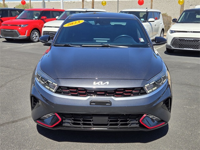 Recent Arrival!28/39 City/Highway MPGGravity Gray 2023 Kia Forte GT-Line FWD CVT 2.0L I4 MPIIf you don't drive here, you can't save here!Price may not include recon fee. GT-Line Technology Package (Electronic Parking Brake (EPB), Forward Collision Avoidance-Assist - Cyclist, Navigation-Based Smart Cruise Control (NSCC), and Smart Cruise Control w/Stop & Go), 17" x 7.0J Alloy Wheels, 4-Wheel Disc Brakes, 6 Speakers, ABS brakes, Air Conditioning, Alloy wheels, AM/FM radio: SiriusXM, Apple CarPlay & Android Auto, Auto High-beam Headlights, Automatic temperature control, Brake assist, Bumpers: body-color, Cloth & SynTex Seat Trim, Delay-off headlights, Driver door bin, Driver vanity mirror, Dual front impact airbags, Dual front side impact airbags, Electronic Stability Control, Emergency communication system, Exterior Parking Camera Rear, Front anti-roll bar, Front Bucket Seats, Front Center Armrest, Front dual zone A/C, Front fog lights, Front reading lights, Front wheel independent suspension, Fully automatic headlights, Heated door mirrors, Illuminated entry, Leather Shift Knob, Leather steering wheel, Low tire pressure warning, Navigation System, Occupant sensing airbag, Outside temperature display, Overhead airbag, Overhead console, Panic alarm, Passenger door bin, Passenger vanity mirror, Power door mirrors, Power steering, Power windows, Radio data system, Radio: 10.25" Display Audio, Rear seat center armrest, Rear window defroster, Remote keyless entry, Security system, Speed control, Split folding rear seat, Spoiler, Sport steering wheel, Steering wheel mounted audio controls, Tachometer, Telescoping steering wheel, Tilt steering wheel, Traction control, Trip computer, Turn signal indicator mirrors, and Variably intermittent wipers.