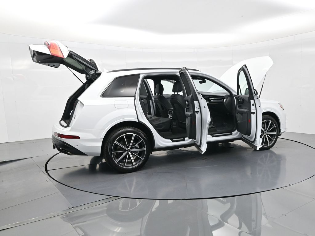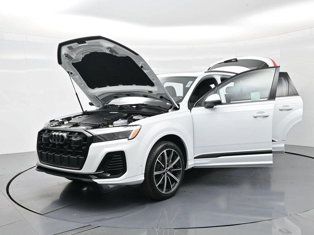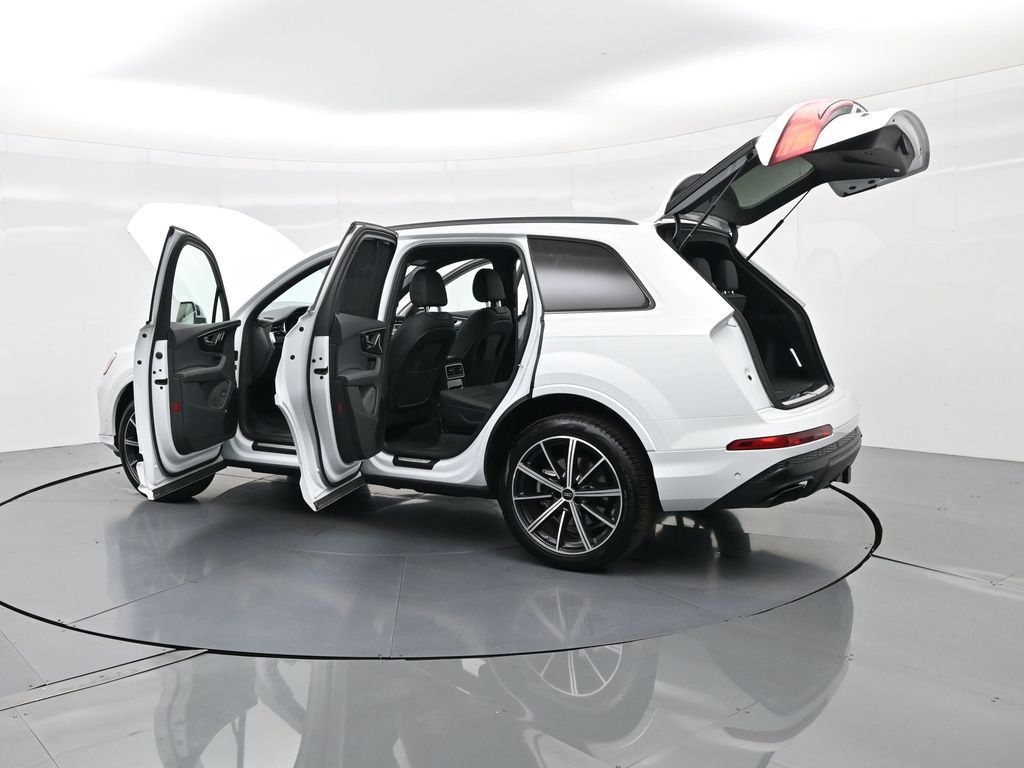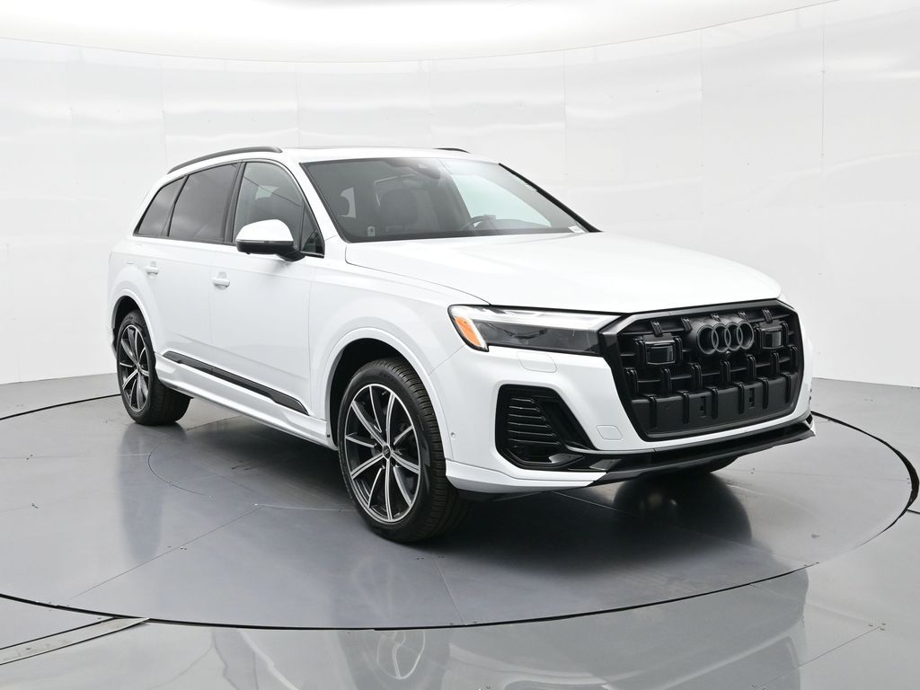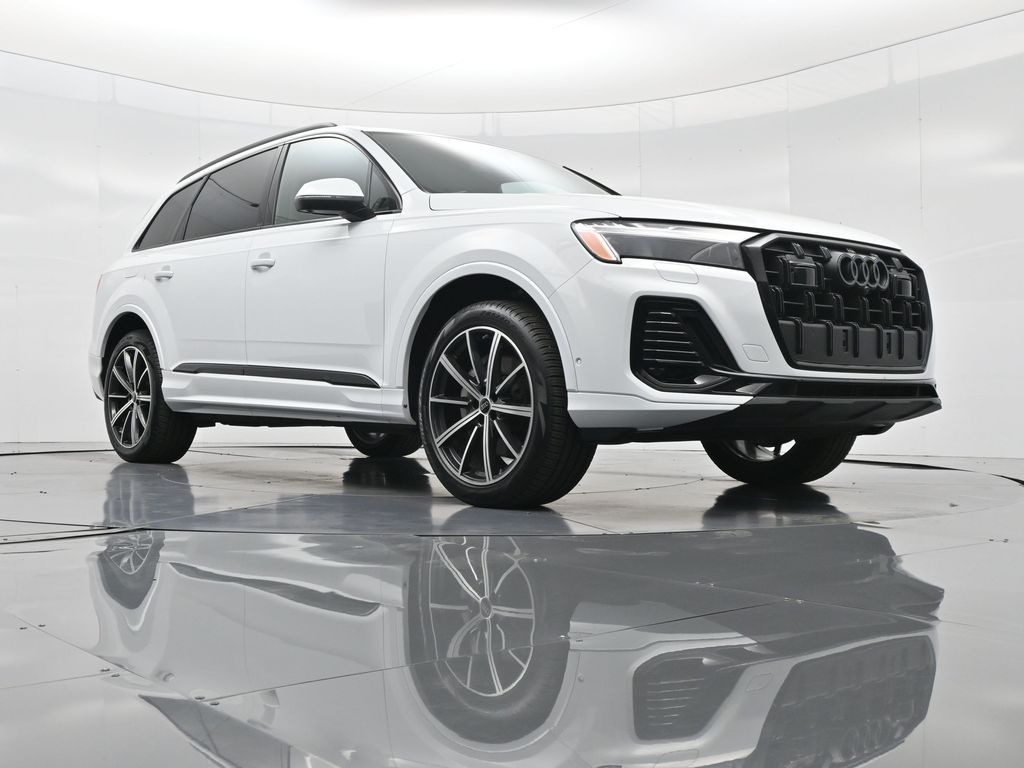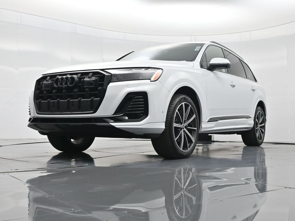 2025 Audi Q7 Premium Plus 45 TFSI quattro, Warm Weather, Black optic & 21" wheels, CARFAX 1-Owner no accidents, just under 8,000 milesB\&O 3D audio, MMI nav, wireless charging, panoramic roof, 20/26 MPG. Para la version en espanol, vea abajo.Three-row luxury SUV with 7-passenger seating, quattro AWD and Audi drive select for confident traction. Warm Weather package adds four-zone climate, ventilated front seats and dual-pane acoustic glass. Black optic styling with 21" wheels sharpens the look, and the factory trailer hitch is ready for weekend gear.Advanced safety tech includes Adaptive Cruise Assist with lane guidance, Audi side assist blind-spot monitoring, front and rear parking sensors and a rearview camera. Inside, Audi Virtual Cockpit Plus, LED lighting and premium materials create a quiet, modern cabin thats great for families and commuters alike.Renowned for its safety, technology and cabin quality in the luxury three-row SUV segment.Shop with confidence: our process is transparent, vehicles are thoroughly reconditioned, and financing is straightforward. Our team answers questions clearly in a no-pressure environment, and pricing is based on real-time market data for fairness and value.Ready to see this vehicle up close? Contact us today to schedule a no-obligation test drive or virtual tour, and lets discuss how we can tailor financing to fit your needs. Our team is dedicated to addressing any concerns and guiding you every step of the way.2025 Audi Q7 Premium Plus 45 TFSI quattro, Warm Weather, Black optic y rines de 21", CARFAX 1-Owner sin accidentes, poco menos de 8,000 millasAudio B\&O 3D, MMI Navigation plus, carga inalambrica, techo panoramico y 20/26 mpg.SUV de lujo de tres filas con capacidad para 7 pasajeros, traccion quattro y Audi drive select para una traccion segura. El paquete Warm Weather anade clima de 4 zonas, asientos delanteros ventilados y vidrio acustico de doble panel. El estilo Black optic con rines de 21" luce deportivo y el enganche de remolque de fabrica esta listo para tu equipo.Tecnologia avanzada de seguridad: Adaptive Cruise Assist con guia de carril, monitoreo de punto ciego Audi side assist, sensores de estacionamiento delanteros y traseros y camara de reversa. Por dentro, Audi Virtual Cockpit Plus, iluminacion LED y materiales premium crean una cabina silenciosa y moderna ideal para familias y viajes diarios.Reconocido por su seguridad, tecnologia y calidad de cabina en el segmento de SUV de tres filas de lujo.Compra con tranquilidad: proceso transparente, reacondicionamiento a fondo y financiamiento sencillo. Nuestro equipo responde con claridad en un ambiente sin presion y fijamos precios con datos de mercado en tiempo real para asegurar valor.Listo para verla de cerca? Contactanos hoy para agendar una prueba de manejo sin compromiso o un recorrido virtual, y conversemos como adaptar el financiamiento a tus necesidades. Nuestro equipo te acompana con atencion en cada paso.
