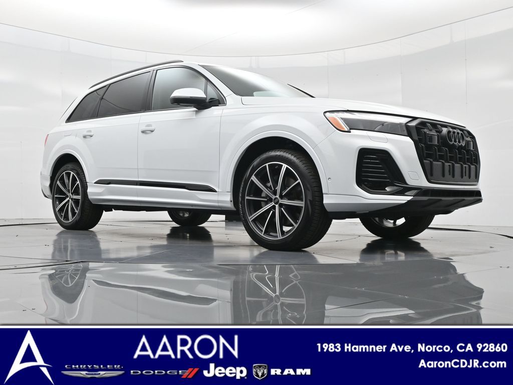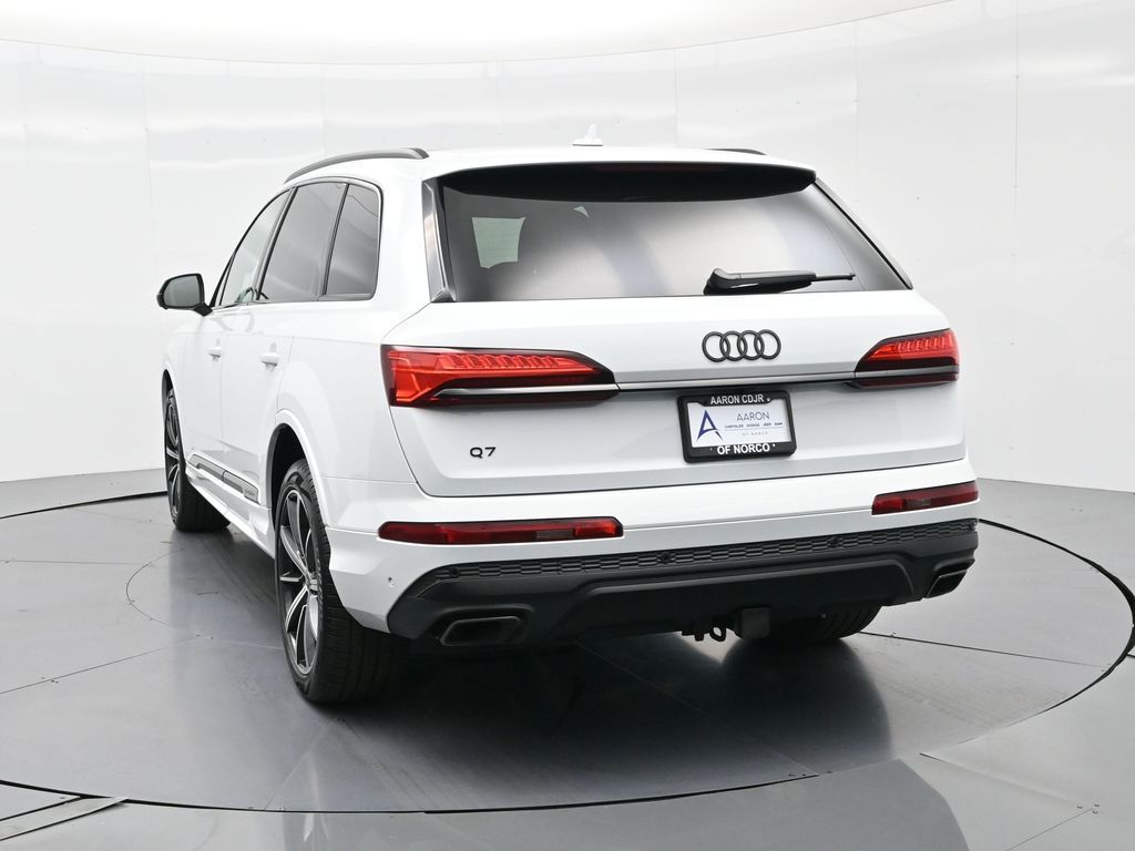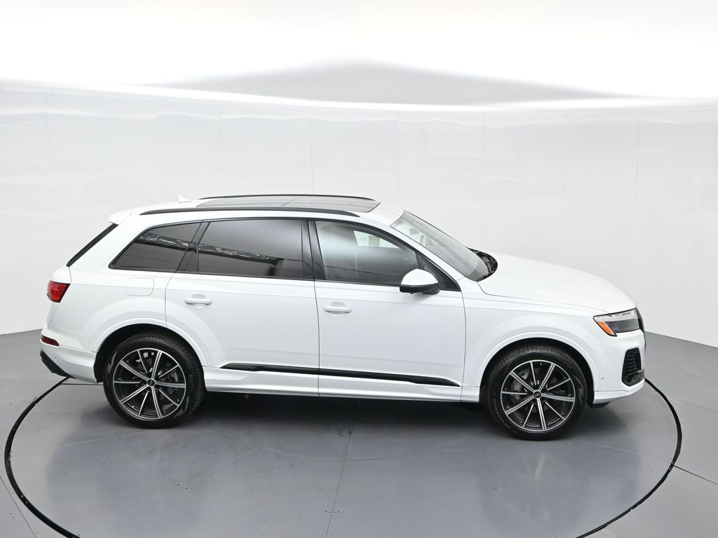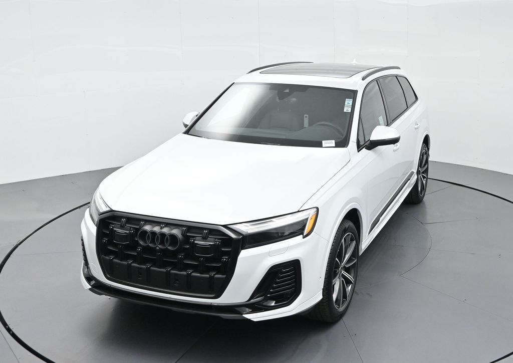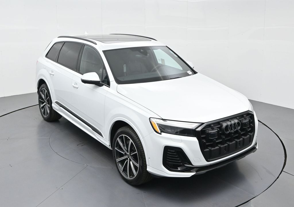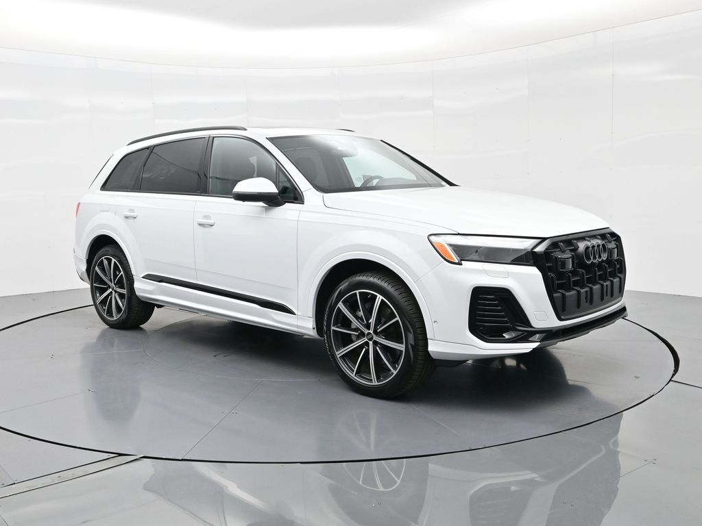 2025 Audi Q7 Premium Plus 45 TFSI quattro, Warm Weather, Black optic & 21" wheels, CARFAX 1-Owner no accidents, just under 8,000 milesB\&O 3D audio, MMI nav, wireless charging, panoramic roof, 20/26 MPG. Para la version en espanol, vea abajo.Three-row luxury SUV with 7-passenger seating, quattro AWD and Audi drive select for confident traction. Warm Weather package adds four-zone climate, ventilated front seats and dual-pane acoustic glass. Black optic styling with 21" wheels sharpens the look, and the factory trailer hitch is ready for weekend gear.Advanced safety tech includes Adaptive Cruise Assist with lane guidance, Audi side assist blind-spot monitoring, front and rear parking sensors and a rearview camera. Inside, Audi Virtual Cockpit Plus, LED lighting and premium materials create a quiet, modern cabin thats great for families and commuters alike.Renowned for its safety, technology and cabin quality in the luxury three-row SUV segment.Shop with confidence: our process is transparent, vehicles are thoroughly reconditioned, and financing is straightforward. Our team answers questions clearly in a no-pressure environment, and pricing is based on real-time market data for fairness and value.Ready to see this vehicle up close? Contact us today to schedule a no-obligation test drive or virtual tour, and lets discuss how we can tailor financing to fit your needs. Our team is dedicated to addressing any concerns and guiding you every step of the way.2025 Audi Q7 Premium Plus 45 TFSI quattro, Warm Weather, Black optic y rines de 21", CARFAX 1-Owner sin accidentes, poco menos de 8,000 millasAudio B\&O 3D, MMI Navigation plus, carga inalambrica, techo panoramico y 20/26 mpg.SUV de lujo de tres filas con capacidad para 7 pasajeros, traccion quattro y Audi drive select para una traccion segura. El paquete Warm Weather anade clima de 4 zonas, asientos delanteros ventilados y vidrio acustico de doble panel. El estilo Black optic con rines de 21" luce deportivo y el enganche de remolque de fabrica esta listo para tu equipo.Tecnologia avanzada de seguridad: Adaptive Cruise Assist con guia de carril, monitoreo de punto ciego Audi side assist, sensores de estacionamiento delanteros y traseros y camara de reversa. Por dentro, Audi Virtual Cockpit Plus, iluminacion LED y materiales premium crean una cabina silenciosa y moderna ideal para familias y viajes diarios.Reconocido por su seguridad, tecnologia y calidad de cabina en el segmento de SUV de tres filas de lujo.Compra con tranquilidad: proceso transparente, reacondicionamiento a fondo y financiamiento sencillo. Nuestro equipo responde con claridad en un ambiente sin presion y fijamos precios con datos de mercado en tiempo real para asegurar valor.Listo para verla de cerca? Contactanos hoy para agendar una prueba de manejo sin compromiso o un recorrido virtual, y conversemos como adaptar el financiamiento a tus necesidades. Nuestro equipo te acompana con atencion en cada paso.