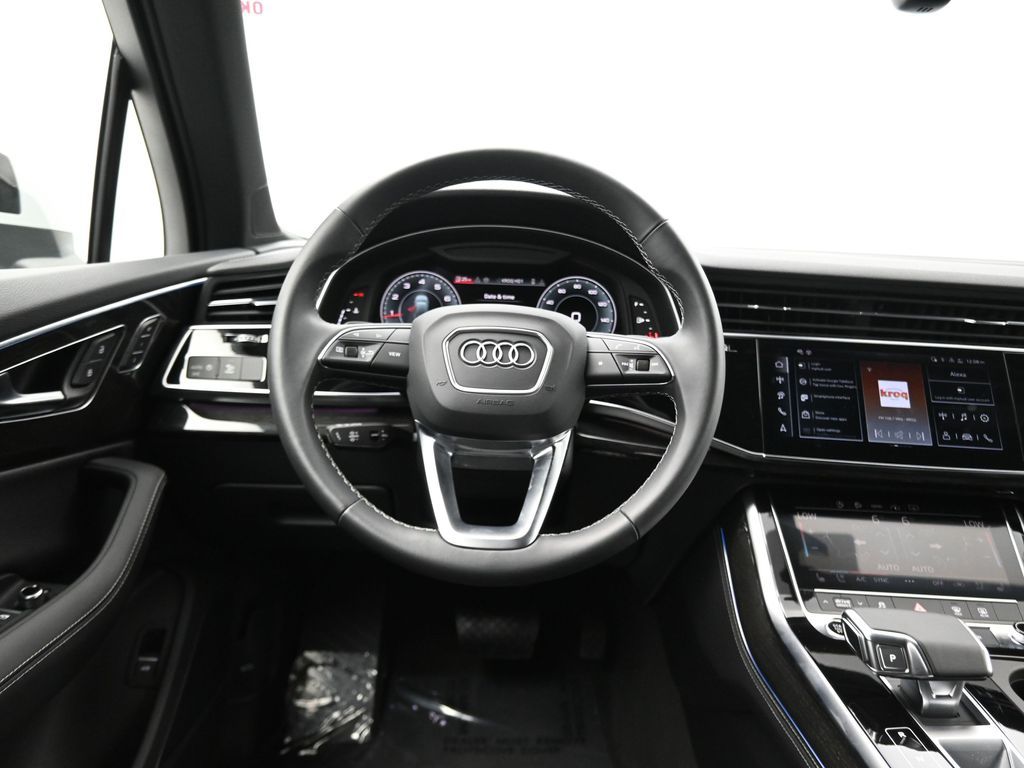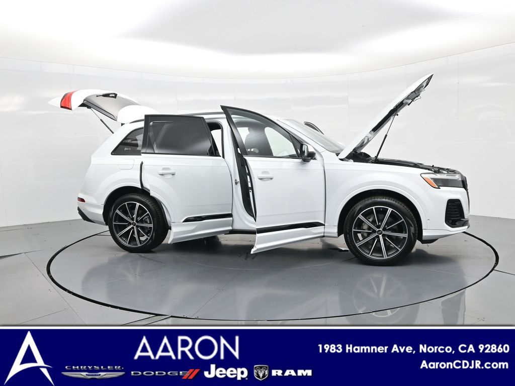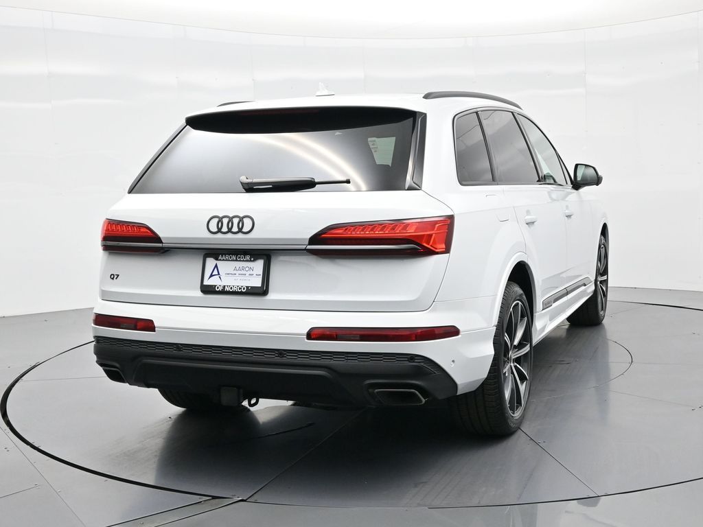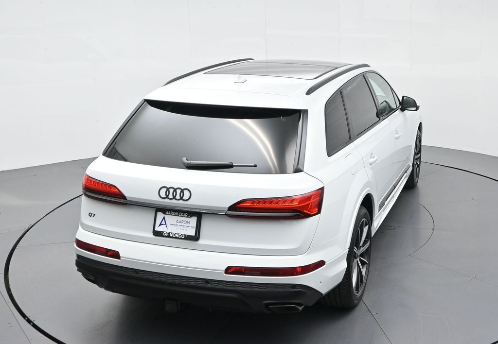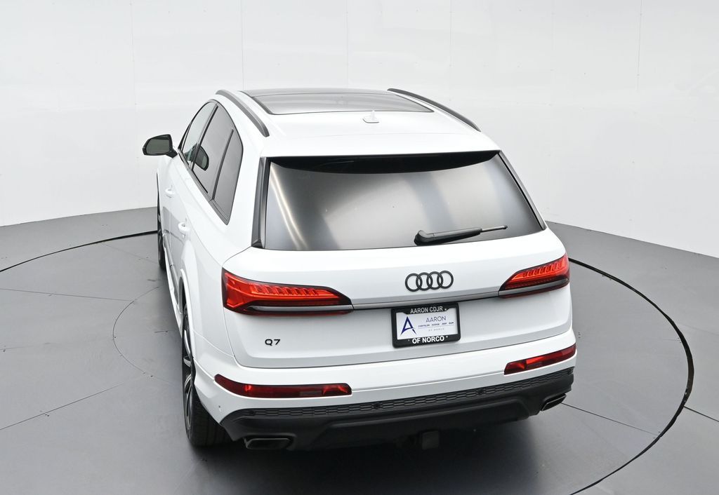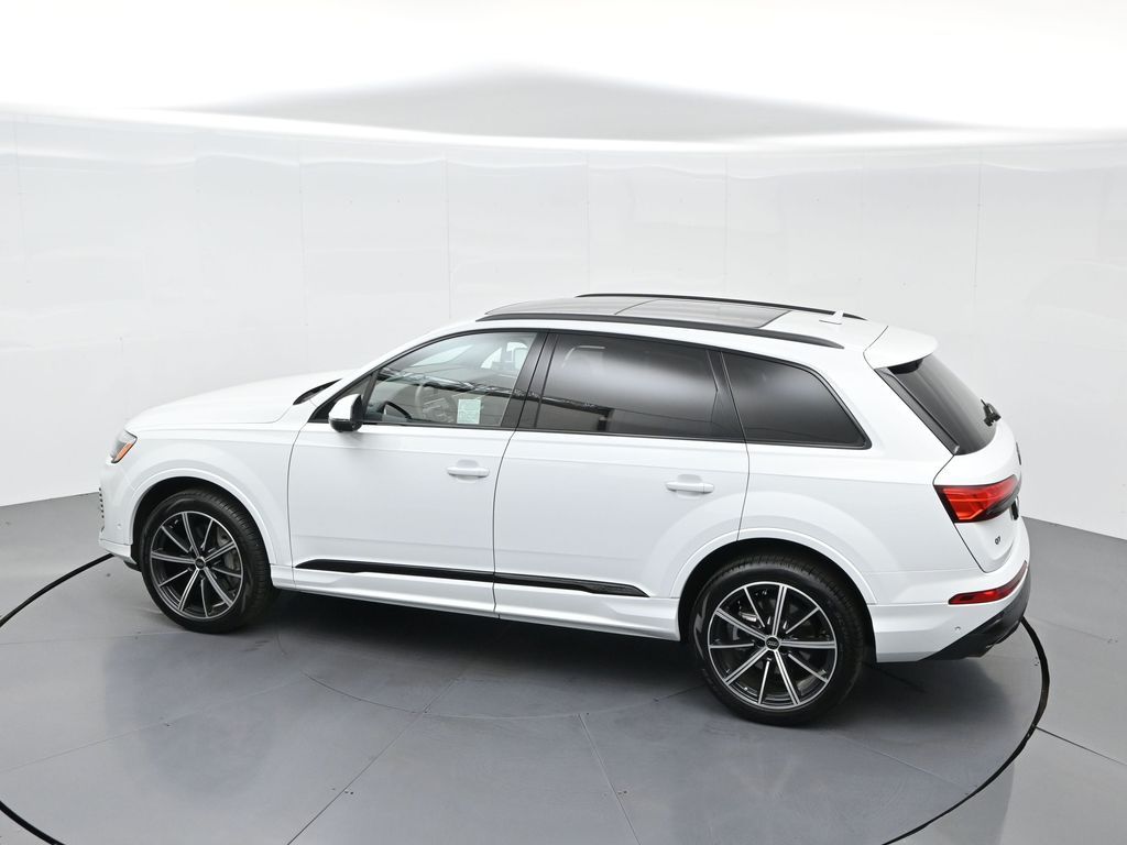2025 Audi Q7 Premium Plus 45 TFSI quattro, Warm Weather, Black optic & 21" wheels, CARFAX 1-Owner no accidents, just under 8,000 milesB\&O 3D audio, MMI nav, wireless charging, panoramic roof, 20/26 MPG. Para la version en espanol, vea abajo.Three-row luxury SUV with 7-passenger seating, quattro AWD and Audi drive select for confident traction. Warm Weather package adds four-zone climate, ventilated front seats and dual-pane acoustic glass. Black optic styling with 21" wheels sharpens the look, and the factory trailer hitch is ready for weekend gear.Advanced safety tech includes Adaptive Cruise Assist with lane guidance, Audi side assist blind-spot monitoring, front and rear parking sensors and a rearview camera. Inside, Audi Virtual Cockpit Plus, LED lighting and premium materials create a quiet, modern cabin thats great for families and commuters alike.Renowned for its safety, technology and cabin quality in the luxury three-row SUV segment.Shop with confidence: our process is transparent, vehicles are thoroughly reconditioned, and financing is straightforward. Our team answers questions clearly in a no-pressure environment, and pricing is based on real-time market data for fairness and value.Ready to see this vehicle up close? Contact us today to schedule a no-obligation test drive or virtual tour, and lets discuss how we can tailor financing to fit your needs. Our team is dedicated to addressing any concerns and guiding you every step of the way.2025 Audi Q7 Premium Plus 45 TFSI quattro, Warm Weather, Black optic y rines de 21", CARFAX 1-Owner sin accidentes, poco menos de 8,000 millasAudio B\&O 3D, MMI Navigation plus, carga inalambrica, techo panoramico y 20/26 mpg.SUV de lujo de tres filas con capacidad para 7 pasajeros, traccion quattro y Audi drive select para una traccion segura. El paquete Warm Weather anade clima de 4 zonas, asientos delanteros ventilados y vidrio acustico de doble panel. El estilo Black optic con rines de 21" luce deportivo y el enganche de remolque de fabrica esta listo para tu equipo.Tecnologia avanzada de seguridad: Adaptive Cruise Assist con guia de carril, monitoreo de punto ciego Audi side assist, sensores de estacionamiento delanteros y traseros y camara de reversa. Por dentro, Audi Virtual Cockpit Plus, iluminacion LED y materiales premium crean una cabina silenciosa y moderna ideal para familias y viajes diarios.Reconocido por su seguridad, tecnologia y calidad de cabina en el segmento de SUV de tres filas de lujo.Compra con tranquilidad: proceso transparente, reacondicionamiento a fondo y financiamiento sencillo. Nuestro equipo responde con claridad en un ambiente sin presion y fijamos precios con datos de mercado en tiempo real para asegurar valor.Listo para verla de cerca? Contactanos hoy para agendar una prueba de manejo sin compromiso o un recorrido virtual, y conversemos como adaptar el financiamiento a tus necesidades. Nuestro equipo te acompana con atencion en cada paso.