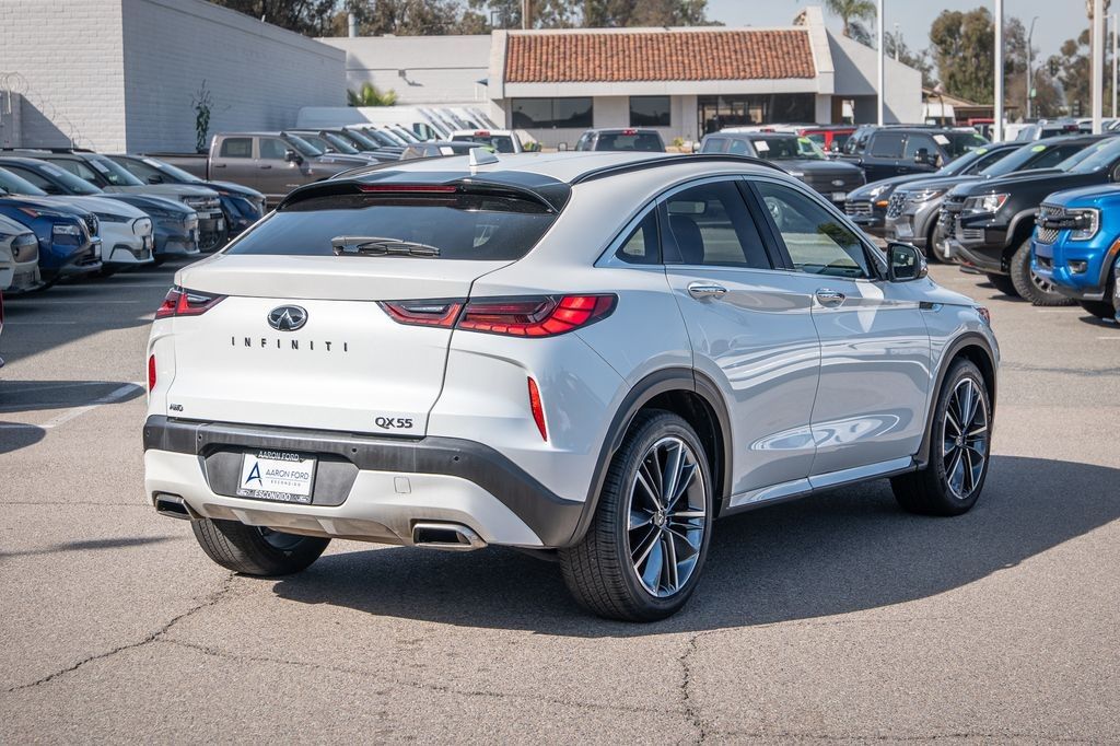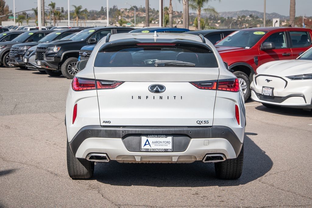 Radiant White 2024 INFINITI QX55 LUXE AWD CVT I4 6 Speakers, AM/FM radio: SiriusXM, Auto High-beam Headlights, Delay-off headlights, Exterior Parking Camera Rear, Front fog lights, Heated Front Bucket Seats, Heated front seats, Memory seat, Outside temperature display, Panic alarm, Power driver seat, Power Liftgate, Power moonroof, Radio: AM/FM Audio System, Rear Parking Sensors, Rear window wiper, Security system, Wheels: 20" x 8.5" Machine Finished Aluminum Alloy.22/28 City/Highway MPG