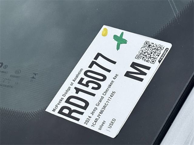 CARFAX One-Owner. INTERIOR & EXTERIOR PROFESSIONALLY DETAILED FOR DELIVERY, MCPEEK CHRYSLER DODGE JEEP RAM FAMILY OWNED AND OPERATED SINCE 1961 !!!!!, 2.0L I4 DOHC, 4WD.Silver Zynith 2024 Jeep Grand Cherokee 4xe 4WD 8-Speed AutomaticReceive Free lube and oil filter changes for up to 45,000 miles for 3 years!!! McPeek's Dodge of Anahiem 1221 S. Auto Center Drive Anahiem, CA 92806 714-262-4902.