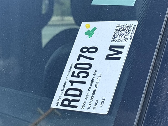 Certified. CARFAX One-Owner. INTERIOR & EXTERIOR PROFESSIONALLY DETAILED FOR DELIVERY, MCPEEK CHRYSLER DODGE JEEP RAM FAMILY OWNED AND OPERATED SINCE 1961 !!!!!, 2.0L I4 DOHC.Black Clearcoat 2024 Jeep Wrangler Sahara 4xe 4WD 8-Speed AutomaticFCA US LLC Certified Pre-Owned Details: * Limited Warranty: 3 Month/3,000 Mile (whichever comes first) after new car warranty expires or from certified purchase date * Roadside Assistance * Vehicles Up to 75,000 Miles and/or 5 Model Years. 24-Hour Towing & Roadside Assistance, Car Rental Allowance, CARFAX® Vehicle History ReportTM and an Introductory 3-month Subscription to SiriusXM® Satellite Radio & Certified Warranty Upgrades * Powertrain Limited Warranty: 84 Month/100,000 Mile (whichever comes first) from original in-service date * 125 Point Inspection * Warranty Deductible: $100 * Vehicle History * Transferable WarrantyReceive Free lube and oil filter changes for up to 45,000 miles for 3 years!!! McPeek's Dodge of Anahiem 1221 S. Auto Center Drive Anahiem, CA 92806 714-262-4902.