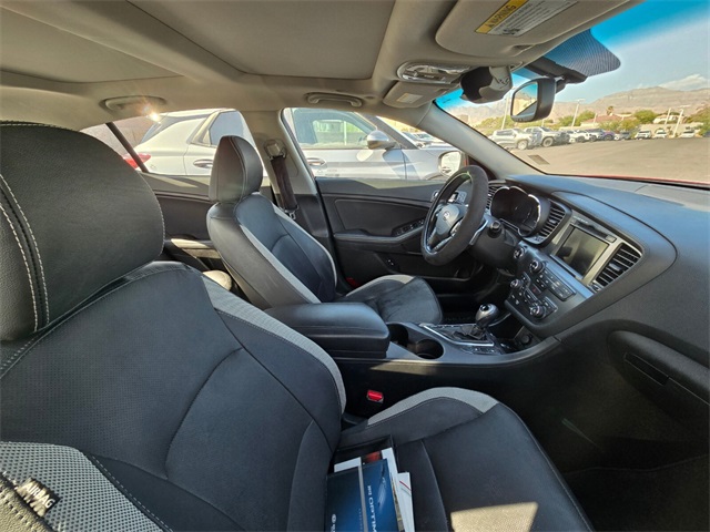 Recent Arrival!Odometer is 51911 miles below market average!22/34 City/Highway MPGSpicy Red 2012 Kia Optima SX FWD 6-Speed Automatic with Sportmatic 2.0L I4 DOHC Turbocharged Black.If you don't drive here, you can't save here!Awards: * JD Power APEAL Study * 2012 IIHS Top Safety Pick * 2012 KBB.com Total Cost of Ownership AwardsPrice may not include recon fee. Premium Touring Package (18" Luxury Alloy Wheels, 4-Way Power Front Passenger Seat, Driver Seat Memory, HD Radio, Heated & Cooled Front Seats, Heated Rear Seats, High-Gloss B-Pillar, Panoramic Sunroof, Radio: Infinity Premium Audio System w/8 Speakers, and UVO Infotainment System w/Rear Camera Display), Technology Package (Back-Up Camera, Navigation System w/NavTraffic, and SIRIUS Traffic), Black, 18" x 7.5" Alloy Wheels, 4-Wheel Disc Brakes, 6 Speakers, ABS brakes, Air Conditioning, Alloy wheels, AM/FM radio: SiriusXM, AM/FM/CD/MP3 Radio, Anti-whiplash front head restraints, Auto-dimming Rear-View mirror, Automatic temperature control, Brake assist, Bumpers: body-color, Cargo Tray, CD player, Compass, Delay-off headlights, Driver door bin, Driver vanity mirror, Dual front impact airbags, Dual front side impact airbags, Electronic Stability Control, Four wheel independent suspension, Front anti-roll bar, Front Bucket Seats, Front Center Armrest, Front dual zone A/C, Front fog lights, Front reading lights, Fully automatic headlights, Garage door transmitter: HomeLink, Heated door mirrors, High-Intensity Discharge Headlights, Illuminated entry, Low tire pressure warning, Occupant sensing airbag, Outside temperature display, Overhead airbag, Overhead console, Panic alarm, Passenger door bin, Passenger vanity mirror, Power door mirrors, Power driver seat, Power steering, Power windows, Rear anti-roll bar, Rear reading lights, Rear seat center armrest, Rear window defroster, Remote keyless entry, Security system, Speed control, Speed-sensing steering, Split folding rear seat, Spoiler, Sport Seat Trim, Steering wheel mounted audio controls, Tachometer, Telescoping steering wheel, Tilt steering wheel, Traction control, Trip computer, Turn signal indicator mirrors, and Variably intermittent wipers.