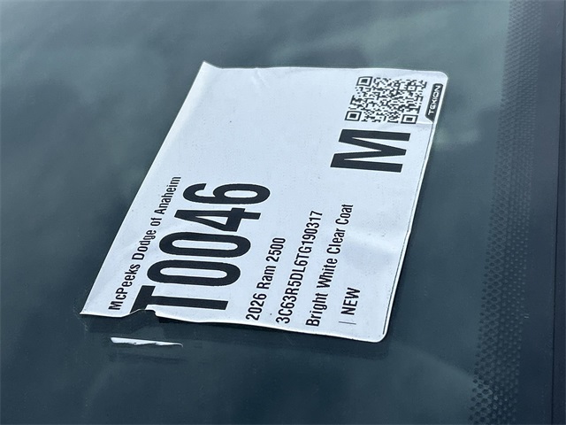 Bright White Clearcoat 2026 Ram 2500 Big Horn 4WD 8-Speed Automatic 6.7L I6 INTERIOR & EXTERIOR PROFESSIONALLY DETAILED FOR DELIVERY, MCPEEK CHRYSLER DODGE JEEP RAM FAMILY OWNED AND OPERATED SINCE 1961 !!!!!.All prices are subject to change without notice. All vehicles subject to prior sale. Advertised price does not include Dealer Installed Accessories or Commercial Bed/Body Upfits. Please contact dealer to receive the most up to date pricing information and complete details. Price includes: $1000 - 2026 National Bonus Cash . Exp. 02/02/2026