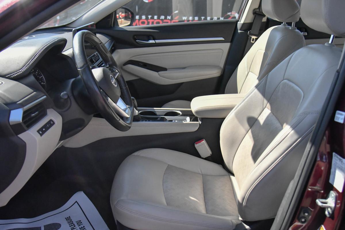 Boasts 37 Highway MPG and 27 City MPG! This Nissan Altima boasts a Regular Unleaded I-4 2.5 L/152 engine powering this Variable transmission. LIGHT GRAY, LEATHER-APPOINTED SEAT TRIM, GARNET PEARL METALLIC, Window Grid Diversity Antenna.*This Nissan Altima Comes Equipped with These Options *Wheels: 19 Unique Alloy -inc: painted inserts, Vinyl Door Trim Insert, Valet Function, Trunk Rear Cargo Access, Trip Computer, Transmission: Xtronic CVT (Continuously Variable), Transmission w/Driver Selectable Mode and Oil Cooler, Tires: 235/40R19 AS, Tire Pressure Monitoring System Tire Specific Low Tire Pressure Warning, Strut Front Suspension w/Coil Springs.