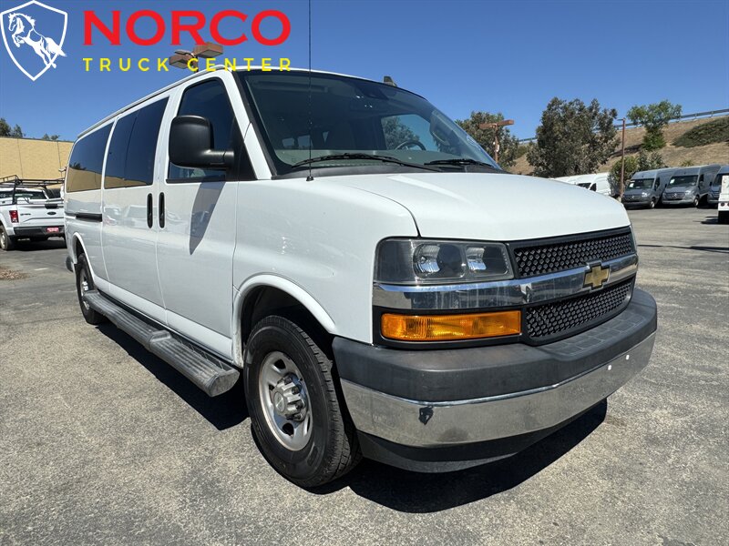 INSTALLED FEATURES: Front air conditioning, Front air conditioning zones: single, Rear air conditioning, Rear air conditioning zones: single, Airbag deactivation: passenger switch, Front airbags: dual, Side airbags: front, Side curtain airbags: front / rear / third row, Antenna type: mast, Auxiliary audio input: jack, Radio: AM/FM, Total speakers: 2, ABS: 4-wheel, Electronic brakeforce distribution, Front brake type: ventilated disc, Power brakes, Rear brake type: ventilated disc, Armrests: front center, Floor mat material: rubber/vinyl, Floor material: carpet, Floor mats: front / rear, Steering wheel trim: urethane, Assist handle: front, Cargo area light, Cruise control, Cupholders: 3 / front, Multi-function remote: keyless entry / panic alarm, Power outlet(s): 115V front / 12V front, Power steering, Reading lights: front, Rearview mirror: manual day/night, Steering wheel: tilt, Steering wheel mounted controls: cruise control, Storage: door pockets / in dash, Vanity mirrors: driver / passenger illuminating, Bumper detail: rear step, Door handle color: black, Exhaust tip color: stainless steel, Front bumper color: chrome, Grille color: black with chrome accents, License plate bracket: front, Mirror color: black, Rear bumper color: chrome, Rear trunk/liftgate: barn, Side door type: passenger-side hinged swing-out, Window trim: black, Clock, Compass, Digital odometer, Fuel economy display: MPG / range, Gauge: oil pressure / tachometer, Multi-function display, Powertrain hour meter, Trip odometer, Warnings and reminders: low fuel level / maintenance due, Daytime running lights, Headlights: auto on/off / halogen, Side mirror adjustments: manual / manual folding, Alternator: 150 amps, Auxiliary oil cooler, Auxiliary transmission fluid cooler, Battery: maintenance-free, Battery rating: 600 CCA, Battery saver, OEM roof height: undefined, Camera system: rearview, Child safety door locks, Child seat anchors: LATCH system, Lane deviation sensors, Pre-collision warning system: audible warning / visual warning, Rearview monitor: in mirror, Fourth row seatbelts: 3-point, Front seatbelts: 3-point, Rear seatbelts: 3-point, Seatbelt pretensioners: front, Third row seatbelts: 3-point, Driver seat manual adjustments: 4 / reclining, Fourth row seat type: 50-50 split bench, Front headrests: 2 / integrated, Front seat type: bucket, Passenger seat manual adjustments: 4 / reclining, Rear seat type: bench, Third row seat type: bench, Upholstery: cloth, Anti-theft system: alarm / vehicle immobilizer, Power door locks: anti-lockout, Hill holder control, Stability control, Traction control, Front shock type: gas, Front spring type: coil, Front stabilizer bar: diameter 35 mm, Front suspension classification: independent, Front suspension type: short and long arm, Rear shock type: gas, Rear spring type: leaf, Rear suspension classification: solid live axle, Rear suspension type: multi-leaf, Driver assistance app: roadside assistance, Satellite communications: OnStar / voice guided directions, Smart device app compatibility: myChevrolet with Connected Access, Smart device app function: maintenance status, Wi-Fi: hotspot, Tow/Haul mode, Spare tire mount location: underbody, Spare tire size: full-size matching, Spare wheel type: steel, Tire Pressure Monitoring System, Wheel covers: partial, Wheels: steel, Front wipers: intermittent, Power windows, Solar-tinted glass, Window defogger: side