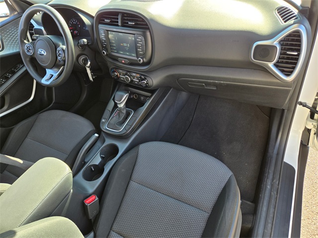 Odometer is 8198 miles below market average!Snow White Pearl 2021 Kia Soul LX FWD 2.0L 4-Cylinder MPI DOHCIf you don't drive here, you can't save here!Price may not include recon fee. 4-Wheel Disc Brakes, 6 Speakers, ABS brakes, Air Conditioning, AM/FM radio, Apple CarPlay & Android Auto, Brake assist, Bumpers: body-color, Cargo Net, Carpeted Floor Mats, Cloth Seat Trim, Delay-off headlights, Driver door bin, Driver vanity mirror, Dual front impact airbags, Dual front side impact airbags, Electronic Stability Control, Exterior Parking Camera Rear, Front anti-roll bar, Front Bucket Seats, Front reading lights, Front wheel independent suspension, Fully automatic headlights, Low tire pressure warning, Occupant sensing airbag, Outside temperature display, Overhead airbag, Overhead console, Passenger door bin, Passenger vanity mirror, Power door mirrors, Power steering, Power windows, Radio: AM/FM/MP3 Audio System, Rear window defroster, Rear window wiper, Speed-sensing steering, Split folding rear seat, Steering wheel mounted audio controls, Tachometer, Telescoping steering wheel, Tilt steering wheel, Traction control, Trip computer, Variably intermittent wipers, and Wheels: 16" x 6.5 Steel.