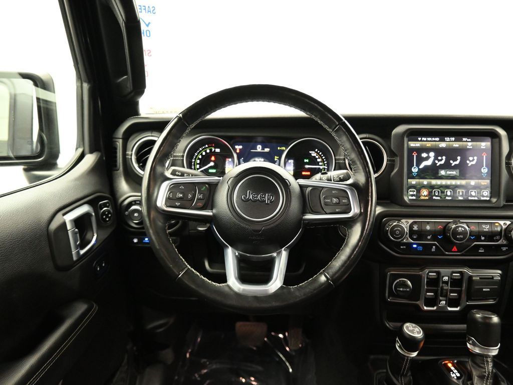 2022 Jeep Wrangler Unlimited Sahara 4xe | 29P & Sky One-Touch Top | Selec-Trac 4x4 2.0L Turbo PHEV | just under 41,000 milesCold Weather Group, LED lamps, Uconnect 8.4-in w/Nav. 49 MPGe/20 MPG. Para la version en espanol, vea abajo.Hybrid 2.0L turbo with 8-speed automatic and Selec-Trac full-time 4x4 (2.72:1) delivers confident traction for trails and weather. Safety tech includes Adaptive Cruise w/Stop, Full-Speed Forward-Collision Warning Plus, Blind-Spot and Cross-Path detection, ParkSense rear park-assist and ParkView camera. Premium McKinley-trimmed seats add comfort.Renowned for plug-in hybrid capability and open-air freedom in the off-road SUV segment.Shop with confidence: we keep the process transparent, complete thorough inspection and reconditioning, and offer straightforward financing. Our friendly, no-pressure team prices with live market data for fair, competitive deals. Listed factory warranties include 5 yr/60k powertrain and 8 yr/100k high-voltage battery.If this catches your eye, reach out now for more photos, a detailed walk-around video, or to book an in-dealership appointment. We're committed to making the process smooth, with expert advice on trade-ins and competitive offers to ease any worries.2022 Jeep Wrangler Unlimited Sahara 4xe | 29P y techo Sky One-Touch | Selec-Trac 4x4 motor turbo 2.0L PHEV | poco menos de 41,000 millasPaquete Cold Weather, lamparas LED y Uconnect de 8.4" con navegacion. 49 MPGe/20 MPG.El turbo hibrido 2.0L con transmision automatica de 8 velocidades y traccion Selec-Trac 4x4 (2.72:1) brinda agarre seguro para terraceria y clima dificil. Suma asistencias como control crucero adaptativo con Stop, alerta de colision frontal a velocidad completa, monitoreo de punto ciego y cruce trasero, ParkSense y camara ParkView. Asientos McKinley elevan el confort.Reconocida por su capacidad hibrida enchufable y libertad al aire libre en el segmento off-road.Compra con tranquilidad: proceso transparente, inspeccion y reacondicionamiento completos y financiamiento claro. Nuestro equipo sin presiones usa datos de mercado en vivo para precios justos. Garantias de fabrica listadas: tren motriz 5 anos/60k y bateria de alto voltaje 8 anos/100k.Da el siguiente paso: contactanos para mas fotos, un video detallado o agendar una cita en la agencia. Nos comprometemos a un proceso agil, con asesoria experta en valuacion de tu intercambio y ofertas competitivas para tu tranquilidad.