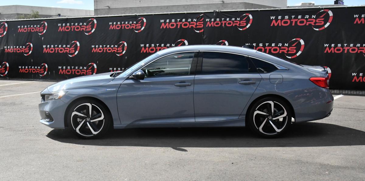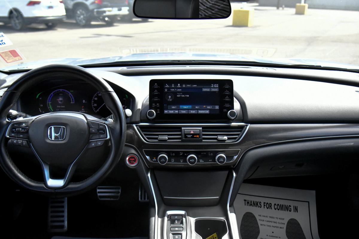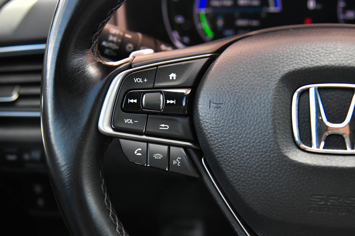 Scores 41 Highway MPG and 44 City MPG! This Honda Accord Hybrid delivers a Gas/Electric I-4 2.0 L/122 engine powering this Variable transmission. Wheels: 19 Machine-Finished Alloy w/Black Inserts, Vehicle Stability Assist (VSA) Electronic Stability Control (ESC), Valet Function.*This Honda Accord Hybrid Comes Equipped with These Options *Trunk Rear Cargo Access, Trip Computer, Transmission: Electronic Continuously Variable -inc: sport mode and deceleration selectors, Tires: 235/40R19 96V AS, Tire mobility kit, Strut Front Suspension w/Coil Springs, Speed Sensitive Variable Intermittent Wipers, Single Stainless Steel Exhaust, Side Impact Beams, Seats w/Cloth Back Material.