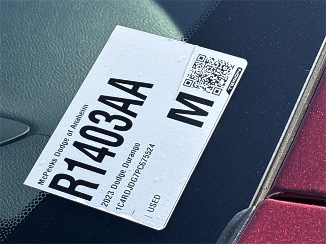 Certified. Odometer is 27514 miles below market average! Clean CARFAX. INTERIOR & EXTERIOR PROFESSIONALLY DETAILED FOR DELIVERY, MCPEEK CHRYSLER DODGE JEEP RAM FAMILY OWNED AND OPERATED SINCE 1961 !!!!!, AWD.Octane Red Pearlcoat 2023 Dodge Durango GT AWD 8-Speed AutomaticFCA US LLC Certified Pre-Owned Details: * Warranty Deductible: $100 * Roadside Assistance * Vehicle History * Vehicles Up to 75,000 Miles and/or 5 Model Years. 24-Hour Towing & Roadside Assistance, Car Rental Allowance, CARFAX® Vehicle History ReportTM and an Introductory 3-month Subscription to SiriusXM® Satellite Radio & Certified Warranty Upgrades * Limited Warranty: 3 Month/3,000 Mile (whichever comes first) after new car warranty expires or from certified purchase date * Powertrain Limited Warranty: 84 Month/100,000 Mile (whichever comes first) from original in-service date * Transferable Warranty * 125 Point InspectionReceive Free lube and oil filter changes for up to 45,000 miles for 3 years!!! McPeek's Dodge of Anahiem 1221 S. Auto Center Drive Anahiem, CA 92806 714-262-4902.