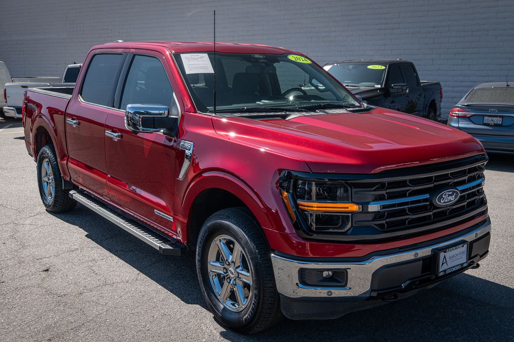 Red Metallic 2024 Ford F-150 XLT 4WD 10-Speed Automatic 3.5L PowerBoost Full-Hybrid V6 3.5L PowerBoost Full-Hybrid V6, 4WD, 400W Cab & Bed Outlets, Adaptive Cruise Control w/Stop & Go, Auto-Dimming Rear-View Mirror, Chrome wheels, Cloth 40/20/40 Front Seat, Cloth 40/Console/40 Front Seats, Console Worksurface, Equipment Group 302A Mid, Ford BlueCruise Equipped (90-Day Trial), Heated Front Seats, Integrated Trailer Brake Controller, Intelligent Access w/Push Button Start, Mobile Office Package, Navigation system: Connected Navigation, Partitioned Lockable Rear Storage, Power Glass Heated Sideview Mirrors, Power-Sliding Rear Window, Remote Start System w/Remote Tailgate Release, Speed Sign Recognition, Tough Bed Spray-In Bedliner, Tow/Haul Package, Variably intermittent wipers, Wheels: 18" Chrome-Like PVD.Odometer is 1738 miles below market average!