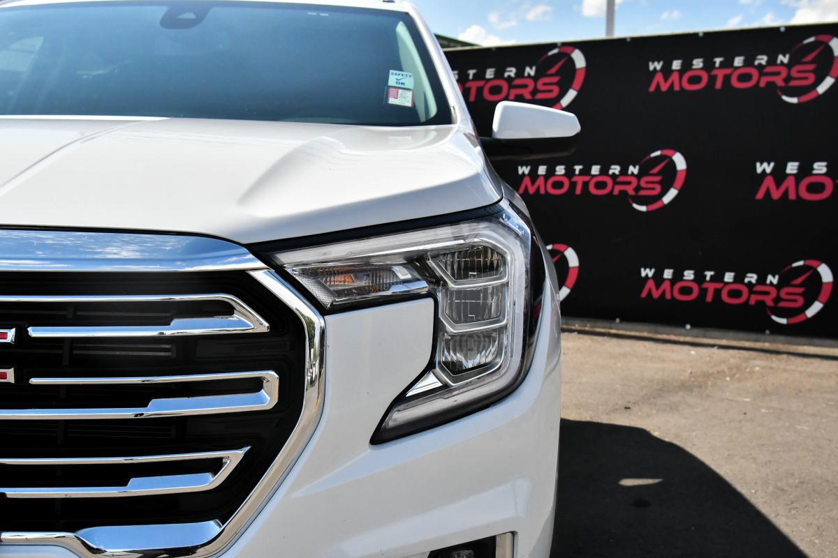 Boasts 28 Highway MPG and 23 City MPG! This GMC Terrain delivers a Turbocharged Gas I4 1.5L/ engine powering this Automatic transmission. WHEELS, 18 X 7 (45.7 CM X 17.8 CM) SILVER PAINTED ALUMINUM (STD), TRANSMISSION, 9-SPEED AUTOMATIC 9T45, ELECTRONICALLY-CONTROLLED WITH OVERDRIVE (STD), TIRES, P225/60R18 ALL-SEASON BLACKWALL (STD).*This GMC Terrain Features the Following Options *LICENSE PLATE FRONT MOUNTING PACKAGE (will be forced on orders with ship-to states that require a front license plate) , SUMMIT WHITE, SLT PREFERRED EQUIPMENT GROUP Includes Standard Equipment, SEATS, FRONT BUCKET (STD), JET BLACK, PERFORATED LEATHER-APPOINTED SEAT TRIM, ENGINE, 1.5L TURBO DOHC 4-CYLINDER, SIDI, VVT (175 hp [131.3 kW] @ 5800 rpm, 203 lb-ft of torque [275.0 N-m] @ 2000 - 4000 rpm) (STD), AXLE, 3.47 FINAL DRIVE RATIO, AUDIO SYSTEM, 8 DIAGONAL GMC INFOTAINMENT SYSTEM includes multi-touch display, AM/FM/SiriusXM stereo, Bluetooth streaming audio for music and most phones, Android Auto and Apple CarPlay capability for compatible phones, advanced voice recognition, in-vehicle apps, personalized profiles for infotainment and vehicle settings (STD), Wireless Apple CarPlay/Wireless Android Auto, Windows, power with rear Express-Down.