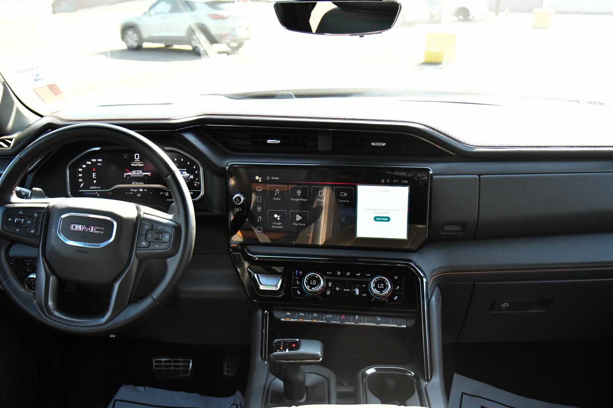 This GMC Sierra 1500 has a dependable Gas V8 6.2L/376 engine powering this Automatic transmission. WINDOW, POWER, REAR SLIDING WITH REAR DEFOGGER, UNIVERSAL HOME REMOTE, TRANSMISSION, 10-SPEED AUTOMATIC WITH ELECTRONIC PRECISION SHIFT, ELECTRONICALLY CONTROLLED with overdrive, and tow/haul mode and steering column paddle shifters. Includes Cruise Grade Braking and Powertrain Grade Braking.*This GMC Sierra 1500 Features the Following Options *LPO, CARGO CONVENIENCE PACKAGE includes (S1O) Console-Mounted Safe, LPO and (VBJ) rear under seat storage, LPO, (dealer-installed), AT4 PREFERRED PACKAGE includes (UG1) Universal Home Remote, (A48) rear sliding power window and (KSG) Adaptive Cruise Control , TRAILER TIRE PRESSURE MONITOR SENSORS includes set of 4 sensors., TIRE, SPARE 265/70R17SL ALL-SEASON, BLACKWALL (STD), SUNROOF, POWER, STERLING METALLIC, SEATS, FRONT BUCKET with center console (STD), REAR CAMERA MIRROR, INSIDE REARVIEW AUTO-DIMMING with full camera display, REAR AXLE, 3.23 RATIO, NOT EQUIPPED WITH STEERING COLUMN LOCK, SEE DEALER FOR DETAILS (Beginning with start of production, vehicles will be forced to include (R7N) Not Equipped with Steering Column Lock, which removes Steering Column Lock. See dealer for details.).