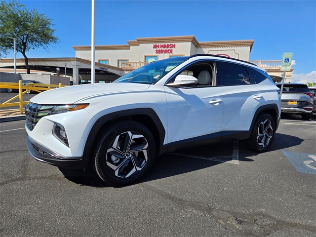 Recent Arrival!CARFAX One-Owner.Priced below KBB Fair Purchase Price!37/36 City/Highway MPGWhite Pearl 2024 Hyundai Tucson Hybrid Limited AWD 6-Speed Automatic I4 I4.If you don't drive here, you can't save here!Price may not include recon fee. Option Group 01, I4, 3.32 Axle Ratio, 4-Wheel Disc Brakes, 8 Speakers, ABS brakes, Air Conditioning, Alloy wheels, AM/FM radio: SiriusXM, Apple CarPlay & Android Auto, Auto High-beam Headlights, Auto-dimming Rear-View mirror, Automatic temperature control, Brake assist, Bumpers: body-color, Cargo Tray, Carpeted Floor Mats, Delay-off headlights, Driver door bin, Driver vanity mirror, Dual front impact airbags, Dual front side impact airbags, Electronic Stability Control, Emergency communication system, Exterior Parking Camera Rear, First Aid Kit, Four wheel independent suspension, Front and Rear Mudguards, Front anti-roll bar, Front Bucket Seats, Front Center Armrest, Front dual zone A/C, Front reading lights, Fully automatic headlights, Garage door transmitter: HomeLink, Heated & Ventilated Front Bucket Seats, Heated door mirrors, Heated front seats, Heated rear seats, Heated steering wheel, Illuminated entry, Leather Seat Trim, Low tire pressure warning, Memory seat, Navigation System, Occupant sensing airbag, Outside temperature display, Overhead airbag, Overhead console, Panic alarm, Passenger door bin, Passenger vanity mirror, Power door mirrors, Power driver seat, Power Liftgate, Power moonroof, Power passenger seat, Power steering, Power windows, Radio data system, Radio: Bose Premium w/AM/FM/HD Audio System, Rain sensing wipers, Rear anti-roll bar, Rear Bumper Applique, Rear reading lights, Rear seat center armrest, Rear side impact airbag, Rear window defroster, Rear window wiper, Remote keyless entry, Roof Rack Cross Rails, Security system, Speed control, Split folding rear seat, Spoiler, Steering wheel mounted audio controls, Tachometer, Telescoping steering wheel, Tilt steering wheel, Traction control, Trip computer, Turn signal indicator mirrors, Variably intermittent wipers, Ventilated front seats, and Wheels: 19" x 7.5J" Machine-Face Finish Alloy.