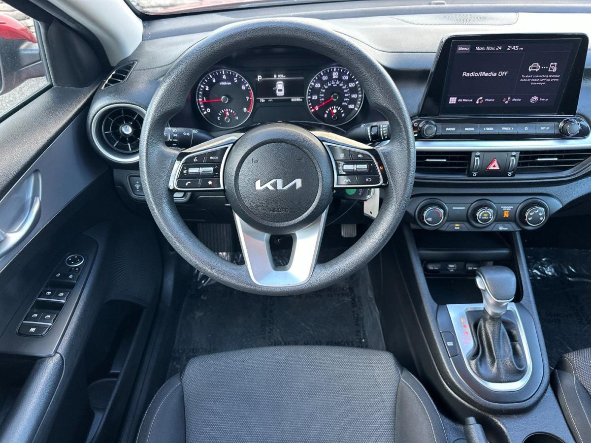 2023 Kia Forte LXS Currant Red with Black InteriorThe 2023 Kia Forte LXS delivers impressive style, fuel efficiency, and modern safety in a sleek, easy-to-own package. Finished in Currant Red over a Black interior, this Forte combines a bold look with practicality and value. Powered by a 2.0-liter 4-cylinder engine paired with Kias intelligent variable transmission, it offers smooth performance and outstanding efficiency rated up to 39 MPG on the highway.Attention-grabbing highlightsClean history, well-maintained, and freshly serviced by our service team. Recent maintenance includes oil and filter change, new air and cabin filters, new brake pads front and rear, and new tires installed in September 2025. The vehicle passed California emissions testing and was professionally detailed inside and out by Aaron Ford of Poway. It runs, drives, and feels exactly as a late-model Kia should smooth, efficient, and ready for daily use.Factory-equipped features 2.0L I4 engine with Dual CVVT Intelligent Variable Transmission with Drive Mode Select Forward Collision-Avoidance Assist with Pedestrian Detection Lane-Keeping Assist and Driver Attention Warning Apple CarPlay and Android Auto Dual-zone climate control Rear camera display 16-inch alloy wheels Power mirrors with integrated turn signals Cloth seat trim in Black LED lighting and chrome-surround grilleOriginal MSRP: $21,610Performance and efficiencyThe Fortes 2.0L four-cylinder delivers responsive acceleration and quiet operation, while the efficient continuously variable transmission helps maximize fuel economy without sacrificing drivability. Its electric power steering, tight turning radius, and lightweight design make it ideal for commuting and urban driving. The suspension tuning provides a composed, confident feel even at highway speeds, making the Forte both comfortable and capable.Interior design and comfortInside, the cabin offers a clean, modern design with intuitive controls and thoughtful touches throughout. The Black cloth seating surfaces are durable yet soft, and the adjustable steering wheel and drivers seat provide excellent ergonomics for long drives. Dual LCD displays, Apple CarPlay, Android Auto, and Bluetooth connectivity keep you connected and entertained. The cabin is surprisingly quiet for its class, with materials and finishes that reflect Kias attention to quality and detail.Condition and confidenceThis vehicle has been inspected, serviced, and detailed by our team to ensure it meets our retail standards. The Currant Red paint retains a deep shine, the interior is clean and odor-free, and all electronic and mechanical systems have been tested and verified. It drives confidently, tracks straight, and brakes smoothly proof of proper maintenance and care.Why this Forte stands outAffordable, efficient, and stylish, this 2023 Kia Forte LXS checks every box for buyers seeking value without compromise. Its clean presentation, fresh service, and excellent fuel economy make it one of the best daily drivers in its class. Perfect for first-time buyers, commuters, or anyone wanting dependable transportation with a premium feel.Call or email to confirm availability and request a personalized walk-around video today. Trade-ins are welcome, and competitive financing options are available on approved credit. Experience a smarter, simpler car-buying process at Aaron Ford of Poway.Family Owned ~ Community Driven ~ You Get More at Aaron Ford of Poway.All vehicles are subject to prior sale. Price does not include applicable government fees and taxes, finance charges, $30 electronic filing charge, $85 document fee, and emission testing charges.