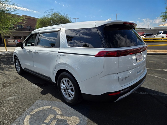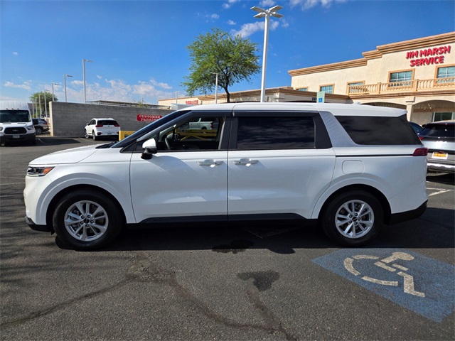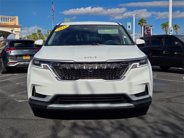 CARFAX One-Owner.Priced below KBB Fair Purchase Price!Odometer is 29338 miles below market average!19/26 City/Highway MPGSnow White Pearl 2023 Kia Carnival LX FWD 8-Speed Automatic V6If you don't drive here, you can't save here!Price may not include recon fee. 3.51 Axle Ratio, 3rd row seats: split-bench, 4-Wheel Disc Brakes, 6 Speakers, ABS brakes, Air Conditioning, Alloy wheels, AM/FM radio, Apple CarPlay & Android Auto, Auto High-beam Headlights, Brake assist, Bumpers: body-color, Cargo Mat, Carpeted Floor Mats (7-Passenger), Cloth Seat Trim, Delay-off headlights, Driver door bin, Driver vanity mirror, Dual front impact airbags, Dual front side impact airbags, EC Mirror w/HomeLink, Electronic Stability Control, Four wheel independent suspension, Front anti-roll bar, Front Bucket Seats, Front Center Armrest, Front reading lights, Fully automatic headlights, Heated door mirrors, Illuminated entry, Knee airbag, Leather Shift Knob, Low tire pressure warning, Occupant sensing airbag, Outside temperature display, Overhead airbag, Overhead console, Panic alarm, Passenger door bin, Passenger vanity mirror, Power door mirrors, Power steering, Power windows, Radio: AM/FM Audio System, Rear air conditioning, Rear anti-roll bar, Rear reading lights, Rear window defroster, Rear window wiper, Reclining 3rd row seat, Remote keyless entry, Security system, Speed control, Speed-sensing steering, Split folding rear seat, Spoiler, Steering wheel mounted audio controls, Tachometer, Telescoping steering wheel, Tilt steering wheel, Traction control, Trip computer, Turn signal indicator mirrors, Variably intermittent wipers, and Wheels: 6.5J x 17" Silver Painted Alloy.