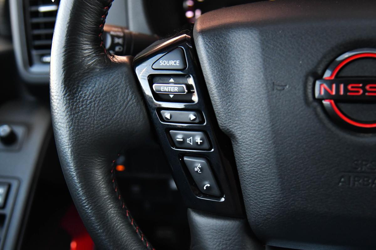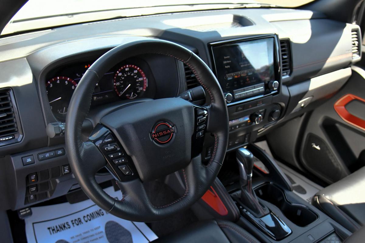 This Nissan Frontier has a dependable Regular Unleaded V-6 3.8 L/231 engine powering this Automatic transmission. BOULDER GRAY PEARL, [V02] TECHNOLOGY PACKAGE -inc: Rear Sonar System, Rear Automatic Braking (RAB), Traffic Sign Recognition (TSR), High Beam Assist (HBA), Blind Spot Warning (BSW), Rear Cross Traffic Alert (RCTA), Intelligent Cruise Control (ICC), Lane Departure Warning (LDW), [F94] ELECTRONIC TAILGATE LOCK.*This Nissan Frontier Comes Equipped with These Options *[B93] PRO-X MUD FLAPS, Wheels: 17 Painted Alloy -inc: Type B, orange bi center cap, Variable Intermittent Wipers, Turn-By-Turn Navigation Directions, Trip Computer, Transmission: 9-Speed Automatic w/Overdrive, Transmission w/Driver Selectable Mode and Oil Cooler, Towing Equipment -inc: Trailer Sway Control, Tires: P265/70R17 All Terrain, Tire Pressure Monitoring System Tire Specific Low Tire Pressure Warning.