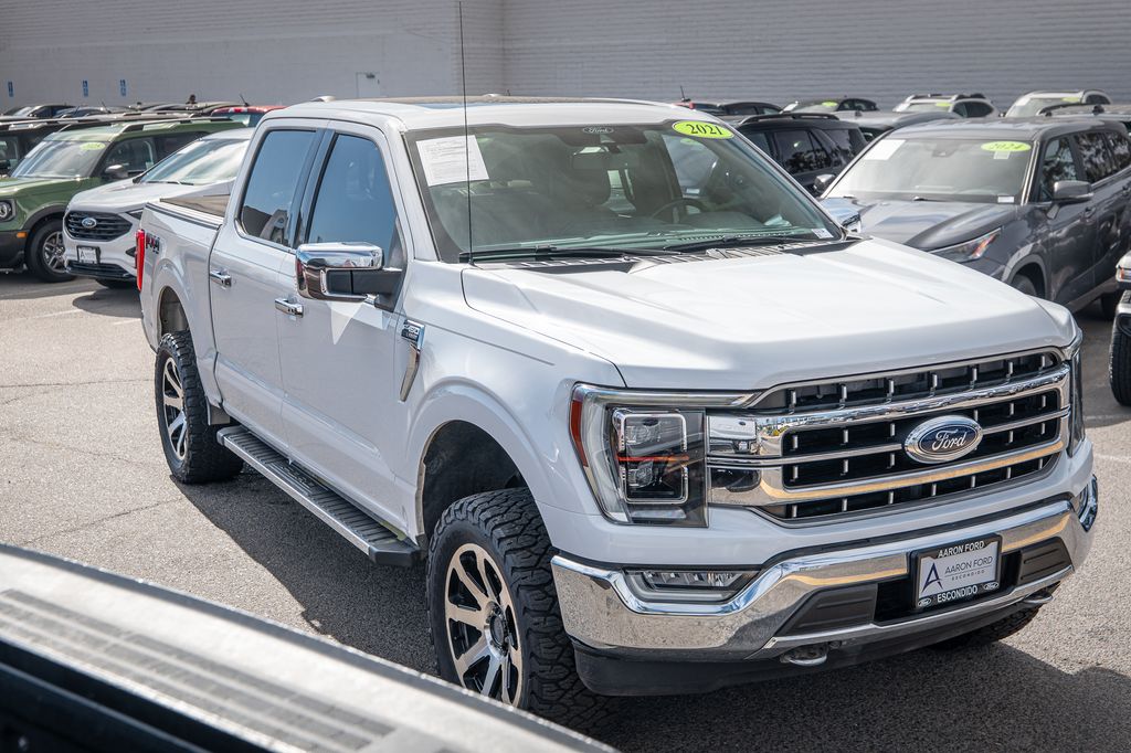 Oxford White 2021 Ford F-150 Lariat 4WD 10-Speed Automatic 3.5L V6 EcoBoost 4WD, 2nd Row Heated Seats, 4x4 FX4 Off-Road Bodyside Decal, 6" Chrome Running Board, 7 Speakers, Automatic temperature control, Chrome 2-Bar Grille w/4 Minor Bars, Chrome Door & Tailgate Handles w/Body-Color Bezel, Chrome Single-Tip Exhaust, Chrome Skull Caps on Exterior Mirrors, Class IV Trailer Hitch Receiver, Connected Built-In Navigation, Equipment Group 502A High, Evasive Steering Assist, Extended Range 36 Gallon Fuel Tank, Ford Co-Pilot360 Assist 2.0, Front dual zone A/C, FX4 Off-Road Package, Heated Steering Wheel, Hill Descent Control, Integrated Trailer Brake Controller, Intelligent Adaptive Cruise Control w/Stop & Go, Intersection Assist, Lariat Chrome Appearance Package, Leather-Trimmed Bucket Seats, LED Projector w/Dynamic Bending Headlamps, Max Trailer Tow Package, Memory seat, Monotube Rear Shocks, Navigation system: Connected Navigation (90-Day Trial), Off-Road Tuned Front Shock Absorbers, Onboard 400W Outlet, Pedal memory, Power driver seat, Power Glass Sideview Mirr w/Chrome Skull Caps, Power Tailgate, Power Tilt/Telescoping Steering Column w/Memory, Pro Trailer Backup Assist, Radio: B&O Sound System by Bang & Olufsen, Rain-Sensing Wipers, Rock Crawl Mode, Speed Sign Recognition, Tray Style Floor Liner, Twin Panel Moonroof, Universal Garage Door Opener, Wheels: 18" Chrome-Like PVD.Awards: * NACTOY 2021 North American Truck of the Year
