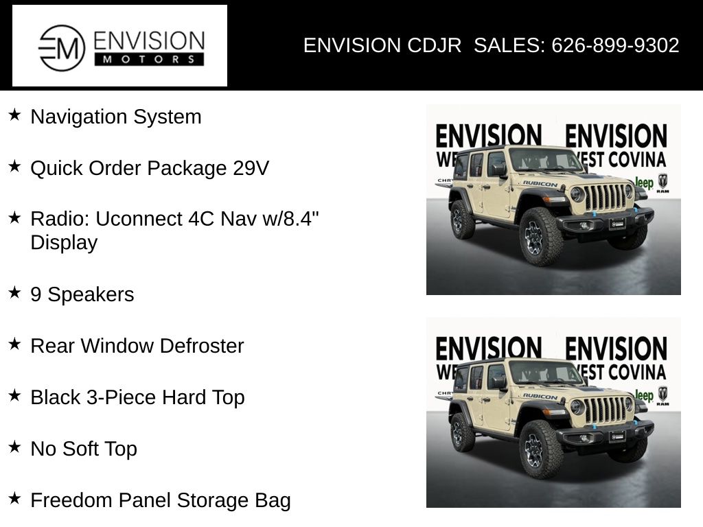 WE SPECIALIZE IN ALL CREDIT PROFILES! See what we can do for you! Call to find out (626) 899-9302.Certified.Odometer is 13248 miles below market average! 2.0L I4 DOHC, 9 Speakers, Black 3-Piece Hard Top, Freedom Panel Storage Bag, Navigation System, No Soft Top, Quick Order Package 29V, Radio: Uconnect 4C Nav w/8.4" Display, Rear Window Defroster, Rear Window Wiper/Washer, Wheels: 17" x 7.5" Machined/Painted Black.Limited Edition Gobi Clearcoat2022 Jeep Wrangler Unlimited Rubicon 4xe 4WD 8-Speed Automatic 2.0L I4 DOHCFCA US LLC Certified Pre-Owned Details: * Warranty Deductible: $100 * Transferable Warranty * Limited Warranty: 3 Month/3,000 Mile (whichever comes first) after new car warranty expires or from certified purchase date * Vehicles Up to 75,000 Miles and/or 5 Model Years. 24-Hour Towing & Roadside Assistance, Car Rental Allowance, CARFAX® Vehicle History ReportTM and an Introductory 3-month Subscription to SiriusXM® Satellite Radio & Certified Warranty Upgrades * Roadside Assistance * Powertrain Limited Warranty: 84 Month/100,000 Mile (whichever comes first) from original in-service date * 125 Point Inspection * Vehicle History**********All Pricing and Advertised Prices for any/all vehicles offered for sale does not include dealer installed accessories which can be purchased for an additional cost.********** The Factory Rebates may not be available on this vehicle if you elect to take advantage of a Special Alternative APR or Special Lease program. Some Factory Rebates are California Resident specific and may vary for residents of other states. NO sales to Dealers, Brokers or Exporters. For out of state purchase, customers must be present to purchase. If shipping is required, dealership must facilitate; no exceptions. Please contact us for special Multi-Vehicle or Fleet pricing. Prices are plus government fees and taxes, any finance charges, $85 documentary fee, $29 electronic registration fee, any emission testing charge and $1.75 per new tire state tire fee. *** We make every effort to provide accurate information, but please verify before purchasing. Leasing & financing available on approved credit. Trade-ins accepted. Subject to prior sale.