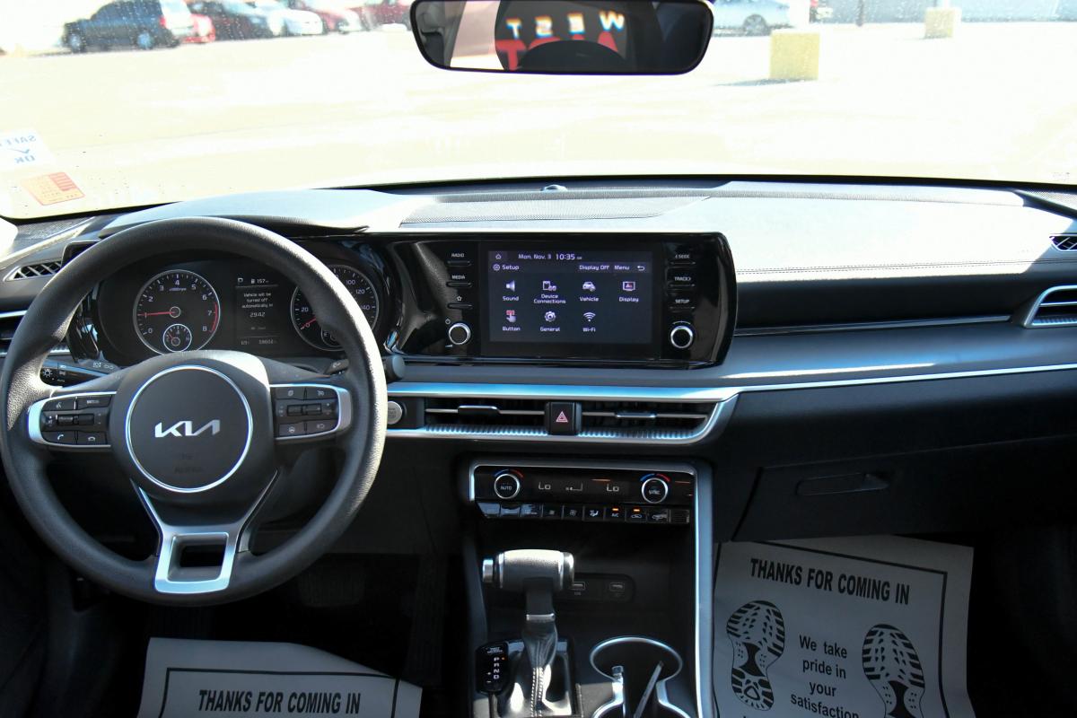 Boasts 37 Highway MPG and 27 City MPG! This Kia K5 delivers a Intercooled Turbo Regular Unleaded I-4 1.6 L/98 engine powering this Automatic transmission. EVERLASTING SILVER, CARPETED FLOOR MATS, BLACK, CLOTH SEAT TRIM.*This Kia K5 Features the Following Options *Wireless Phone Connectivity, Window Grid Antenna, Wheels: 16 Gray Alloy, Variable Intermittent Wipers, Urethane Gear Shifter Material, Turn-By-Turn Navigation Directions, Trunk Rear Cargo Access, Trip Computer, Transmission: 8-Speed Automatic -inc: drive mode select system, Transmission w/Driver Selectable Mode and Sequential Shift Control.