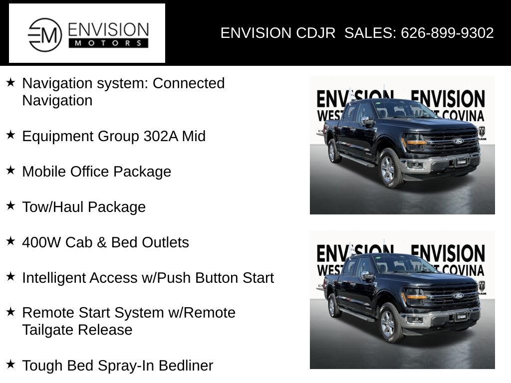 WE SPECIALIZE IN ALL CREDIT PROFILES! See what we can do for you! Call to find out (626) 899-9302.CARFAX One-Owner. Clean CARFAX.Odometer is 3813 miles below market average! 3.5L PowerBoost Full-Hybrid V6, 4WD, 400W Cab & Bed Outlets, Adaptive Cruise Control w/Stop & Go, Auto-Dimming Rear-View Mirror, Cloth 40/Console/40 Front Seats, Console Worksurface, Equipment Group 302A Mid, Ford BlueCruise Equipped (90-Day Trial), Heated Front Seats, Integrated Trailer Brake Controller, Intelligent Access w/Push Button Start, Mobile Office Package, Navigation system: Connected Navigation, Partitioned Lockable Rear Storage, Power Glass Heated Sideview Mirrors, Power-Sliding Rear Window, Remote Start System w/Remote Tailgate Release, Speed Sign Recognition, Tough Bed Spray-In Bedliner, Tow/Haul Package, Wheels: 18" Chrome-Like PVD.Agate Black Metallic2024 Ford F-150 XLT 4WD 10-Speed Automatic 3.5L PowerBoost Full-Hybrid V6**********All Pricing and Advertised Prices for any/all vehicles offered for sale does not include dealer installed accessories which can be purchased for an additional cost.********** The Factory Rebates may not be available on this vehicle if you elect to take advantage of a Special Alternative APR or Special Lease program. Some Factory Rebates are California Resident specific and may vary for residents of other states. NO sales to Dealers, Brokers or Exporters. For out of state purchase, customers must be present to purchase. If shipping is required, dealership must facilitate; no exceptions. Please contact us for special Multi-Vehicle or Fleet pricing. Prices are plus government fees and taxes, any finance charges, $85 documentary fee, $29 electronic registration fee, any emission testing charge and $1.75 per new tire state tire fee. *** We make every effort to provide accurate information, but please verify before purchasing. Leasing & financing available on approved credit. Trade-ins accepted. Subject to prior sale.