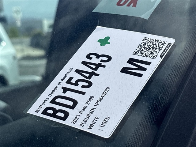 Certified. Clean CARFAX. CARFAX One-Owner. INTERIOR & EXTERIOR PROFESSIONALLY DETAILED FOR DELIVERY, MCPEEK CHRYSLER DODGE JEEP RAM FAMILY OWNED AND OPERATED SINCE 1961 !!!!!.Bright White Clearcoat 2023 Ram 2500 Big Horn 4WD 6-Speed AutomaticFCA US LLC Certified Pre-Owned Details: * Powertrain Limited Warranty: 84 Month/100,000 Mile (whichever comes first) from original in-service date * Vehicle History * Vehicles Up to 75,000 Miles and/or 5 Model Years. 24-Hour Towing & Roadside Assistance, Car Rental Allowance, CARFAX® Vehicle History ReportTM and an Introductory 3-month Subscription to SiriusXM® Satellite Radio & Certified Warranty Upgrades * Limited Warranty: 3 Month/3,000 Mile (whichever comes first) after new car warranty expires or from certified purchase date * Warranty Deductible: $100 * Roadside Assistance * Transferable Warranty * 125 Point InspectionReceive Free lube and oil filter changes for up to 45,000 miles for 3 years!!! McPeek's Dodge of Anahiem 1221 S. Auto Center Drive Anahiem, CA 92806 714-262-4902.
