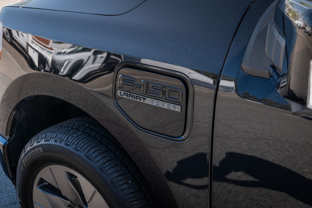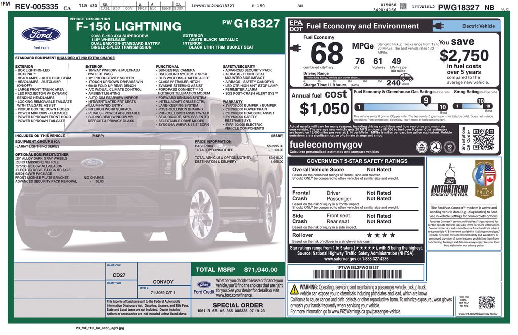 Agate Black Metallic 2023 Ford F-150 Lightning Lariat AWD Single-Speed Automatic Electric Motor Wheels: 20" Alloy Dark Carbonized Gray.76/61 City/Highway MPG