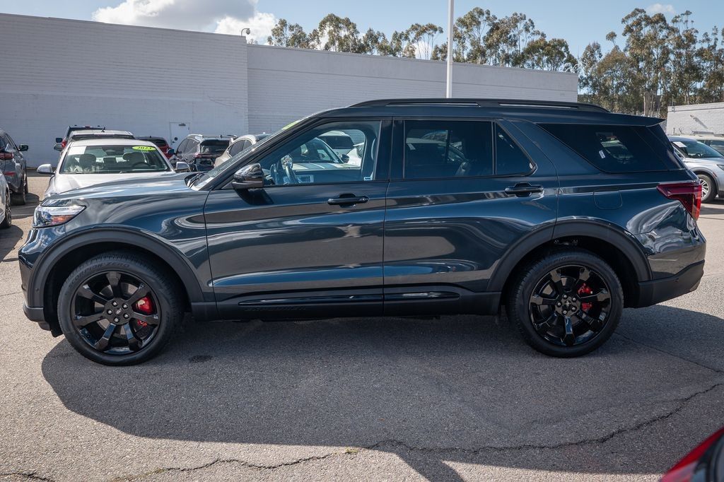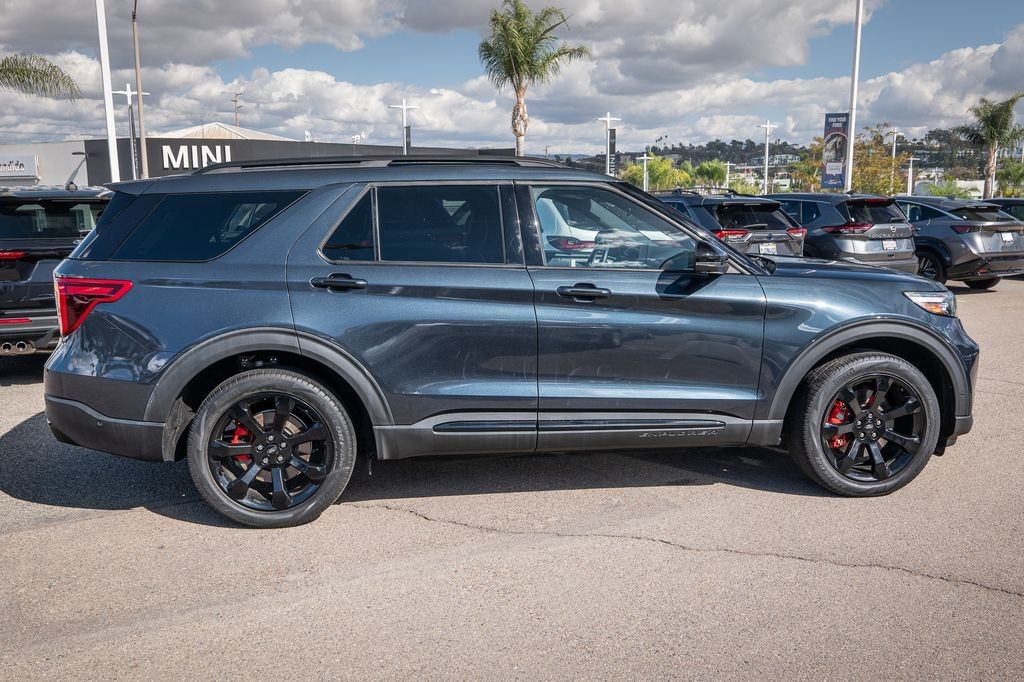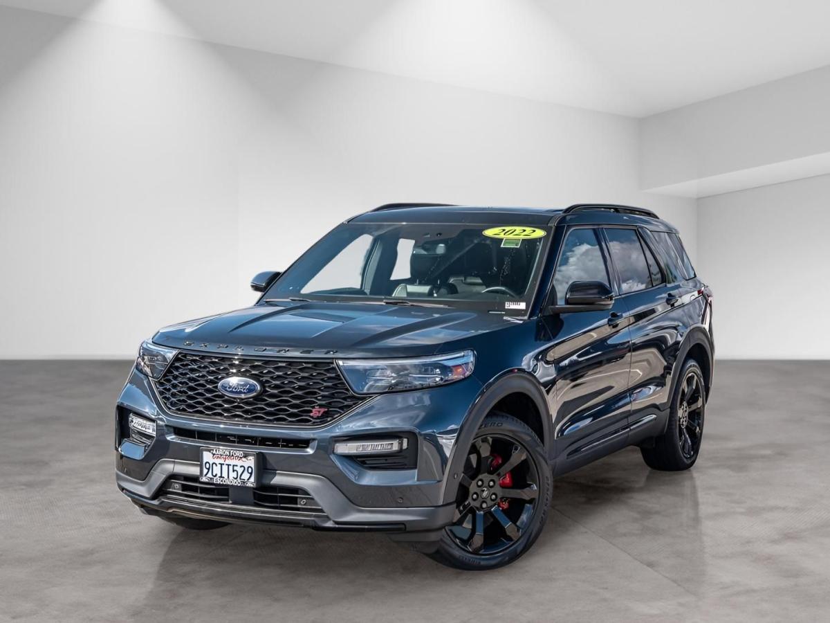 Stone Blue Metallic 2022 Ford Explorer ST 4WD 10-Speed Automatic 3.0L EcoBoost V6 4WD, 10.1" LCD Capacitive Portrait Touchscreen, 110V/150W AC Power Outlet, 2 Additional Speakers, 360-Degree Camera w/Split View, Auto-Dimming Rearview Mirror (Interior), Equipment Group 401A, Evasive Steering Assist, Ford Co-Pilot360 Assist+, FordPass Connect, Front Parking Sensors, Front Rain-Sensing Wipers, Hands-Free Foot-Activated Liftgate, Intelligent Adaptive Cruise Control, Memory Driver's Seat, Performance Front & Rear Brakes, Power Tilt/Telescoping Steering Column, Radio: B&O Sound System by Bang & Olufsen, Reverse Brake Assist, Second Row Heated Seats, Sideview Mirrors w/Gloss Black Caps, Speed Sign Recognition, ST High Package, ST Street Pack, SYNC 3 Communications & Entertainment System, Technology Package, Third Row PowerFold (Folds Flat), Twin Panel Moonroof, Universal Garage Door Opener (UGDO), Voice-Activated Touchscreen Navigation System, Wheels: 21" Aluminum, Wireless Charging Pad.