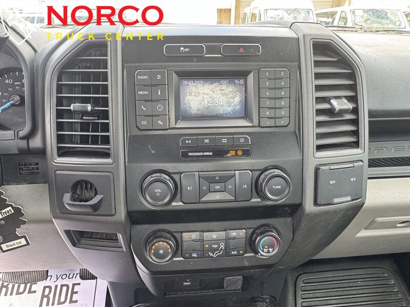 INSTALLED FEATURES: Air filtration, Front air conditioning, Front air conditioning zones: single, Airbag deactivation: passenger switch, Front airbags: dual, Side airbags: front, Side curtain airbags: front, Antenna type: mast, Auxiliary audio input: Bluetooth / USB, Radio: AM/FM / voice operated, Speed sensitive volume control, Total speakers: 4, ABS: 4-wheel, Braking assist, Electronic brakeforce distribution, Front brake type: ventilated disc, Power brakes, Rear brake type: ventilated disc, Armrests: front center, Door sill trim: scuff plate, Floor material: rubber/vinyl, Steering wheel trim: urethane, Assist handle: front, Cupholders: front, Power outlet(s): 12V front / USB front / USB-C front, Power steering, Reading lights: front, Rearview mirror: manual day/night, Steering wheel: tilt and telescopic, Steering wheel mounted controls: audio / multi-function / phone / voice control, Storage: accessory hook / door pockets, Vanity mirrors: passenger, Door handle color: black, Front bumper color: black, Grille color: black, Mirror color: black, Pickup bed light, Rear bumper color: black, Tailgate: lift assist / removable, Window trim: black, Connected in-car apps: app marketplace integration, Infotainment: SYNC, Infotainment screen size: 4.2 in., Clock, Digital odometer, External temperature display, Gauge: oil pressure / tachometer / transmission temperature, Instrument cluster screen size: 2.3 in., Powertrain hour meter, Warnings and reminders: low fuel level / maintenance due, Headlights: auto delay off / auto on/off / halogen / quad headlights / wiper activated, Side mirror adjustments: manual / manual folding / manual telescoping, Towing mirrors, Alternator: 157 amps, Battery: maintenance-free, Battery rating: 650 CCA, Battery saver, Automatic hazard warning lights, Camera system: rearview, Child seat anchors, Crumple zones: front, Impact sensor: alert system / door unlock / post-collision safety system, Programmable safety key, Rearview monitor: in dash, Emergency locking retractors: front, Front seatbelts: 3-point, Seatbelt pretensioners: front, Seatbelt warning sensor: front, Driver seat manual adjustments: 6 / lumbar / reclining, Front headrests: 2 / adjustable, Front seat type: 40-20-40 split bench, Passenger seat manual adjustments: 4 / reclining, Upholstery: vinyl, Anti-theft system: vehicle immobilizer, Hill holder control, Roll stability control, Stability control, Traction control, Trailer stability control, Front shock type: gas, Front spring type: coil, Front stabilizer bar, Front suspension classification: independent, Front suspension type: twin I-beam, Rear shock type: gas, Rear spring type: leaf, Rear suspension classification: solid live axle, Rear suspension type: multi-leaf, Electronic messaging assistance: voice operated / with read function, Hands-free phone call integration: voice operated, Smart device app compatibility: FordPass Connect, Smart device app function: engine start / lock operation / maintenance status / vehicle location, Wi-Fi: hotspot, Wireless data link: Bluetooth, Tow hooks: front, Trailer hitch, Trailer wiring: 4-pin / 7-pin, Spare tire mount location: underbody, Spare tire size: full-size, Spare wheel type: steel, Tire Pressure Monitoring System, Wheels: painted steel, Front wipers: variable intermittent, Solar-tinted glass: front