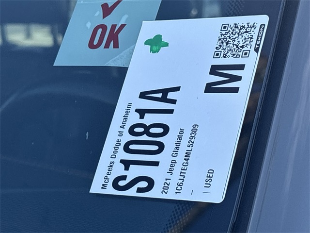Certified. INTERIOR & EXTERIOR PROFESSIONALLY DETAILED FOR DELIVERY, MCPEEK CHRYSLER DODGE JEEP RAM FAMILY OWNED AND OPERATED SINCE 1961 !!!!!.Sting-Gray Clearcoat 2021 Jeep Gladiator Mojave 4WD 8-Speed AutomaticFCA US LLC Certified Pre-Owned Details: * Limited Warranty: 3 Month/3,000 Mile (whichever comes first) after new car warranty expires or from certified purchase date * Powertrain Limited Warranty: 84 Month/100,000 Mile (whichever comes first) from original in-service date * 125 Point Inspection * Warranty Deductible: $100 * Roadside Assistance * Vehicle History * Vehicles Up to 75,000 Miles and/or 5 Model Years. 24-Hour Towing & Roadside Assistance, Car Rental Allowance, CARFAX® Vehicle History ReportTM and an Introductory 3-month Subscription to SiriusXM® Satellite Radio & Certified Warranty Upgrades * Transferable WarrantyAwards: * JD Power Initial Quality Study (IQS)Receive Free lube and oil filter changes for up to 45,000 miles for 3 years!!! McPeek's Dodge of Anahiem 1221 S. Auto Center Drive Anahiem, CA 92806 714-262-4902.