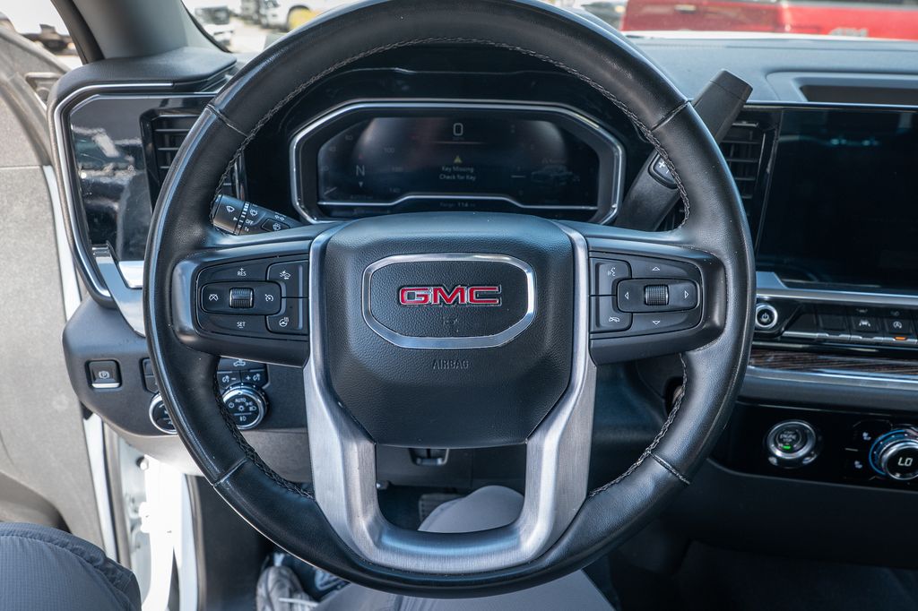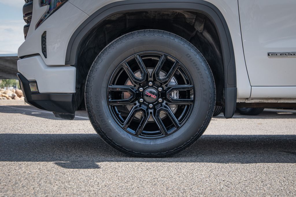 Summit White 2023 GMC Sierra 1500 Elevation 4WD 8-Speed Automatic 2.7L I4 Turbocharged DOHC 16V LEV3-ULEV50 310hp 8-Speed Automatic, 4WD, Black Cloth.