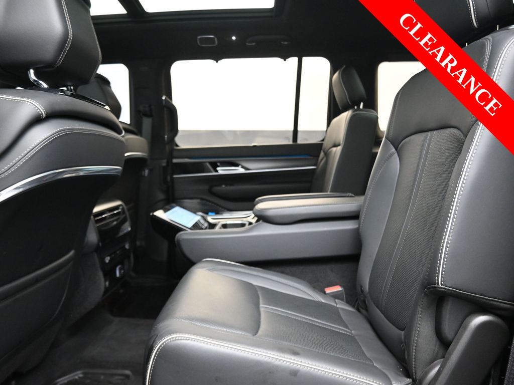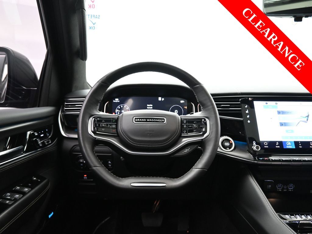 2023 Jeep Grand Wagoneer Series II Obsidian 4x4 with Obsidian Package 28T, 6.4L V8, 8-speed automatic, 4x4, 1-Owner, regular oil changes, just under 16,000 miles.With the Obsidian Package 28T, this luxury SUV adds 22-inch polished wheels with black inserts, ventilated second-row captains chairs, and premium black accents for a commanding road presence. Powered by a 6.4L V8 paired to an 8-speed automatic transmission and standard 4x4, it delivers confident performance on any terrain. Para la version en espanol, vea abajo.CARFAX confirms a 1-Owner history with regular oil changes, giving added confidence in long-term reliability. The odometer shows just under 16,000 miles, offering low-mileage peace of mind. EPA ratings return 14 MPG city and 20 MPG highway, balancing power with efficiency in its class.Inside, this Grand Wagoneer pampers with Palermo leather, massaging front seats, 24-way power adjustment, and a tri-pane panoramic sunroof. Tech highlights include a 12-inch Uconnect touchscreen, 19-speaker McIntosh audio, adaptive cruise control, and active lane management.This model year is renowned for its reliability and performance in the full-size luxury SUV segment, combining capability with premium refinement.If this catches your eye, reach out now for more photos, a detailed walk-around video, or to book an in-dealership appointment. We're committed to making the process smooth, with expert advice on trade-ins and competitive offers to ease any worries.2023 Jeep Grand Wagoneer Series II Obsidian 4x4 con paquete Obsidian 28T, motor V8 6.4L, transmision automatica de 8 velocidades, traccion 4x4, 1 dueno y cambios de aceite regulares, con poco menos de 16,000 millas.Con el paquete Obsidian 28T, esta SUV de lujo agrega rines de 22 pulgadas con insertos negros, asientos de capitan en la segunda fila ventilados y acentos en negro para una presencia imponente. Impulsada por un V8 de 6.4L con transmision automatica de 8 velocidades y traccion 4x4, ofrece desempeno seguro en cualquier terreno.CARFAX confirma historial de 1 dueno con cambios de aceite regulares, brindando confianza adicional en su durabilidad. El odometro marca poco menos de 16,000 millas, garantizando baja millaje. La EPA estima 14 MPG en ciudad y 20 MPG en carretera, equilibrando potencia y eficiencia.En el interior, esta Grand Wagoneer consiente con piel Palermo, asientos delanteros con masaje y 24 posiciones de ajuste electrico, ademas de techo panoramico de tres paneles. La tecnologia incluye pantalla tactil Uconnect de 12 pulgadas, sistema de audio McIntosh de 19 bocinas, control de crucero adaptativo y manejo activo de carril.Este ano modelo es reconocido por su confiabilidad y desempeno en el segmento de SUV de lujo de gran tamano, combinando capacidad con refinamiento premium.Da el siguiente paso enviandonos un mensaje para una cotizacion personalizada o para agendar una visita conveniente. Ofrecemos opciones flexibles como consultas virtuales y prometemos resolver cualquier duda con transparencia para generar tu confianza.
