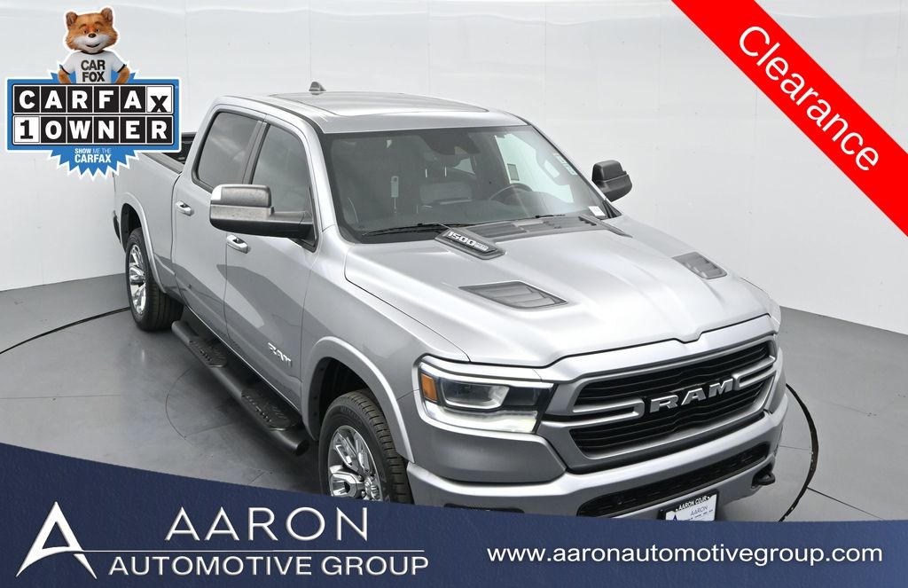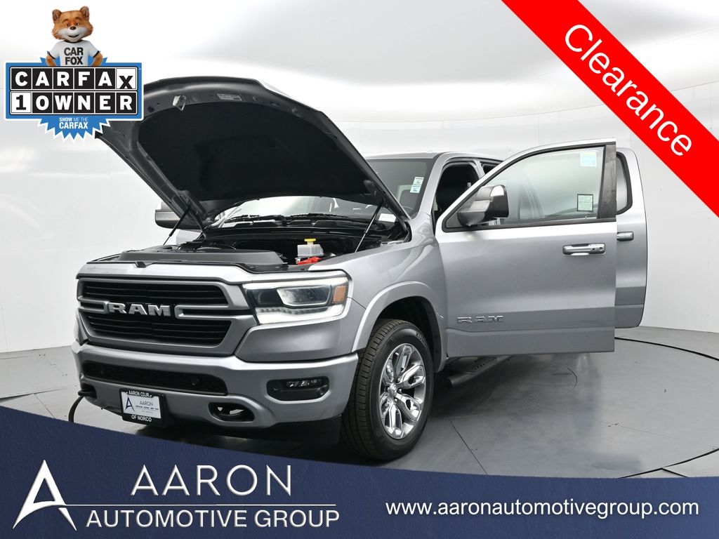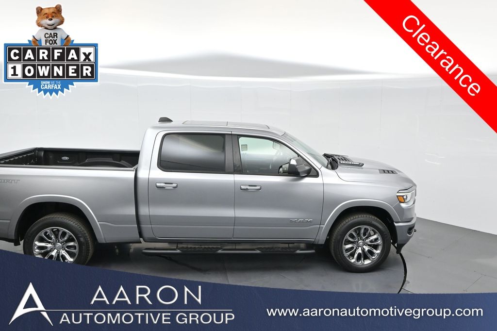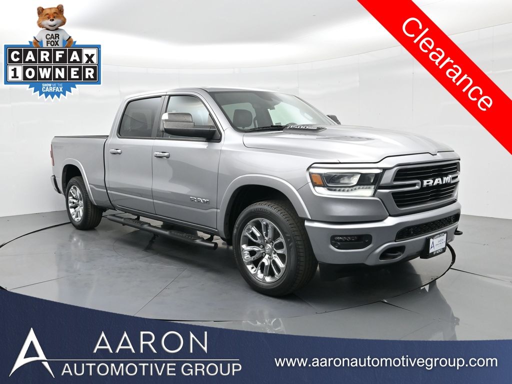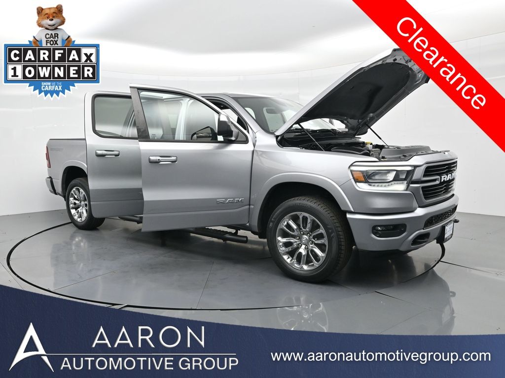 2021 Ram 1500 Laramie Crew Cab 4x4. Equipped with the Laramie Level 2 Equipment Group and a 5.7L HEMI V8 engine paired with 8-speed automatic transmission, this truck blends comfort with muscle. CARFAX shows it as a 1-Owner with no accidents reported, consistent oil changes, and regular service history. Mileage is just over 20,000 miles. EPA fuel economy is rated at 17 MPG city and 22 MPG highway.This Laramie includes premium upgrades like the Dual-Pane Panoramic Sunroof, 12-inch Uconnect Navigation Display, and the Advanced Safety Group with Adaptive Cruise Control, Lane Keep Assist, and Parallel/Perpendicular Park Assist. With the Protection Group and 4x4 capability, its ready for both rugged and refined use. Para la version en espanol, vea abajo.Inside, the cabin delivers upscale comfort with leather-trimmed heated and ventilated front seats, heated second-row seats, and a 19-speaker Harman Kardon premium sound system. The power-sliding rear window, wireless charging pad, and integrated navigation make every drive convenient, while the Crew Cab configuration ensures ample rear passenger space.This Ram 1500 also features Blind-Spot and Cross-Path Detection, Trailer Brake Control, LED lighting, and a spray-in bedliner for lasting durability. With the 5.7L HEMI V8 and 4x4 drivetrain, it offers impressive strength for towing and hauling, while still delivering a composed ride for daily driving.For 2021, the Ram 1500 earned praise as a finalist for the North American Truck of the Year and received IIHS Top Safety Pick designation on select trims equipped with specific headlights. Renowned for blending capability, technology, and premium interior finishes, it stands as one of the most awarded trucks in its class.Ready to see this vehicle up close? Contact us today to schedule a no-obligation test drive or virtual tour, and let's discuss how we can tailor financing to fit your needs. Our team is dedicated to addressing any concerns and guiding you every step of the way.2021 Ram 1500 Laramie Crew Cab 4x4. Equipada con el paquete Laramie Level 2 Equipment Group y un motor HEMI V8 de 5.7L con transmision automatica de 8 velocidades, esta camioneta combina lujo con potencia. CARFAX confirma que es de un solo dueno, sin accidentes reportados y con historial de servicios regulares. El odometro marca poco mas de 20,000 millas. Su economia de combustible esta calificada en 17 MPG en ciudad y 22 MPG en carretera.Esta Laramie incluye mejoras premium como techo panoramico de doble panel, pantalla Uconnect de 12 pulgadas con navegacion y el paquete de seguridad avanzada con control de crucero adaptativo, asistencia de carril y asistencia de estacionamiento paralelo/perpendicular. Con el paquete Protection Group y traccion 4x4, esta lista tanto para la aventura como para el uso diario.Por dentro, ofrece lujo con asientos delanteros de piel ventilados y con calefaccion, asientos traseros calefactados y sistema de audio Harman Kardon de 19 bocinas. La ventana trasera electrica, el cargador inalambrico y la navegacion integrada hacen cada viaje mas practico, mientras que la cabina Crew Cab brinda amplio espacio para los pasajeros traseros.Este Ram 1500 tambien cuenta con monitoreo de punto ciego, deteccion de cruce trasero, control de freno de remolque, luces LED y bedliner en spray para mayor durabilidad. Con su motor HEMI V8 de 5.7L y traccion 4x4, ofrece gran capacidad para remolque y carga, sin sacrificar comodidad en la conduccion diaria.En 2021, la Ram 1500 fue finalista al premio North American Truck of the Year y recibio la designacion IIHS Top Safety Pick en versiones especificas. Reconocida por su capacidad, tecnologia y acabados interiores de lujo, es una de las camionetas mas premiadas en su clase.Si esta camioneta llamo tu atencion, contactanos ahora para mas fotos, un video detallado o para agendar una cita en la agencia. Estamos comprometidos a hacer el proceso sencillo, con asesoria experta en valuacion de tu