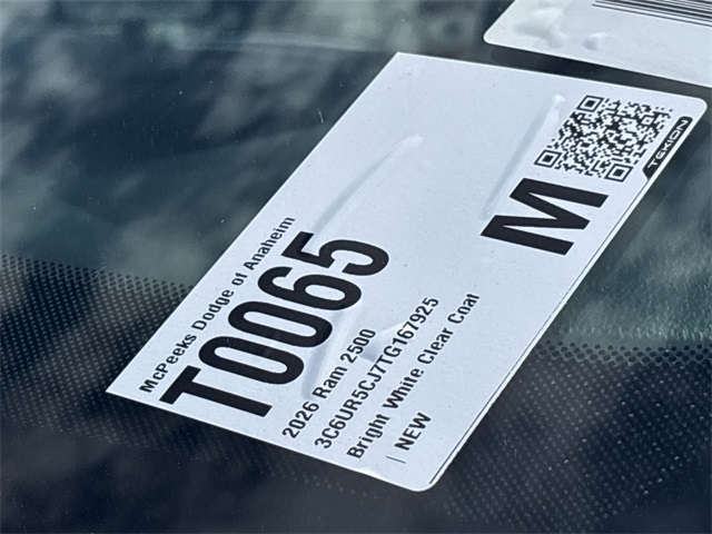 Bright White Clearcoat 2026 Ram 2500 Tradesman 4WD 8-Speed Automatic 6.4L V8 INTERIOR & EXTERIOR PROFESSIONALLY DETAILED FOR DELIVERY, MCPEEK CHRYSLER DODGE JEEP RAM FAMILY OWNED AND OPERATED SINCE 1961 !!!!!.All prices are subject to change without notice. All vehicles subject to prior sale. Advertised price does not include Dealer Installed Accessories or Commercial Bed/Body Upfits. Please contact dealer to receive the most up to date pricing information and complete details. Price includes: $1000 - 2026 National Bonus Cash . Exp. 02/02/2026