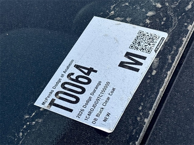 DB Black Crystal Clearcoat 2026 Dodge Durango GT Plus AWD 8-Speed Automatic 3.6L V6 24V VVT INTERIOR & EXTERIOR PROFESSIONALLY DETAILED FOR DELIVERY, MCPEEK CHRYSLER DODGE JEEP RAM FAMILY OWNED AND OPERATED SINCE 1961 !!!!!, AWD.All prices are subject to change without notice. All vehicles subject to prior sale. Advertised price does not include Dealer Installed Accessories or Commercial Bed/Body Upfits. Please contact dealer to receive the most up to date pricing information and complete details.Receive Free lube and oil filter changes for up to 45,000 miles for 3 years!!! McPeek's Dodge of Anahiem 1221 S. Auto Center Drive Anahiem, CA 92806 714-262-4902. Price includes: $1000 - 2026 National Engine Retail Bonus Cash . Exp. 01/05/2026 $1000 - 2026 West BC Retail Bonus Cash . Exp. 01/05/2026