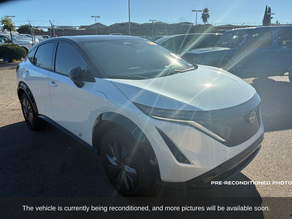 Everest White Pearl Tricoat/Black Diamond Pearl 2023 Nissan Ariya ENGAGE e-4ORCE AWD CVT Electric Motor 19" Alloy Wheels, Front dual zone A/C, Illuminated Kick Plates, Navigation system: Nissan Door to Door Connected Navigation.Recent Arrival! 101/89 City/Highway MPG
