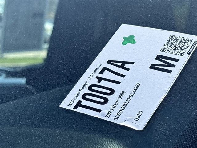 Certified. CARFAX One-Owner. INTERIOR & EXTERIOR PROFESSIONALLY DETAILED FOR DELIVERY, MCPEEK CHRYSLER DODGE JEEP RAM FAMILY OWNED AND OPERATED SINCE 1961 !!!!!.Diamond Black Crystal Pearlcoat 2023 Ram 3500 Laramie 4WD Aisin 6-Speed AutomaticFCA US LLC Certified Pre-Owned Details: * Vehicle History * Warranty Deductible: $100 * Vehicles Up to 75,000 Miles and/or 5 Model Years. 24-Hour Towing & Roadside Assistance, Car Rental Allowance, CARFAX® Vehicle History ReportTM and an Introductory 3-month Subscription to SiriusXM® Satellite Radio & Certified Warranty Upgrades * 125 Point Inspection * Roadside Assistance * Limited Warranty: 3 Month/3,000 Mile (whichever comes first) after new car warranty expires or from certified purchase date * Transferable Warranty * Powertrain Limited Warranty: 84 Month/100,000 Mile (whichever comes first) from original in-service dateReceive Free lube and oil filter changes for up to 45,000 miles for 3 years!!! McPeek's Dodge of Anahiem 1221 S. Auto Center Drive Anahiem, CA 92806 714-262-4902.